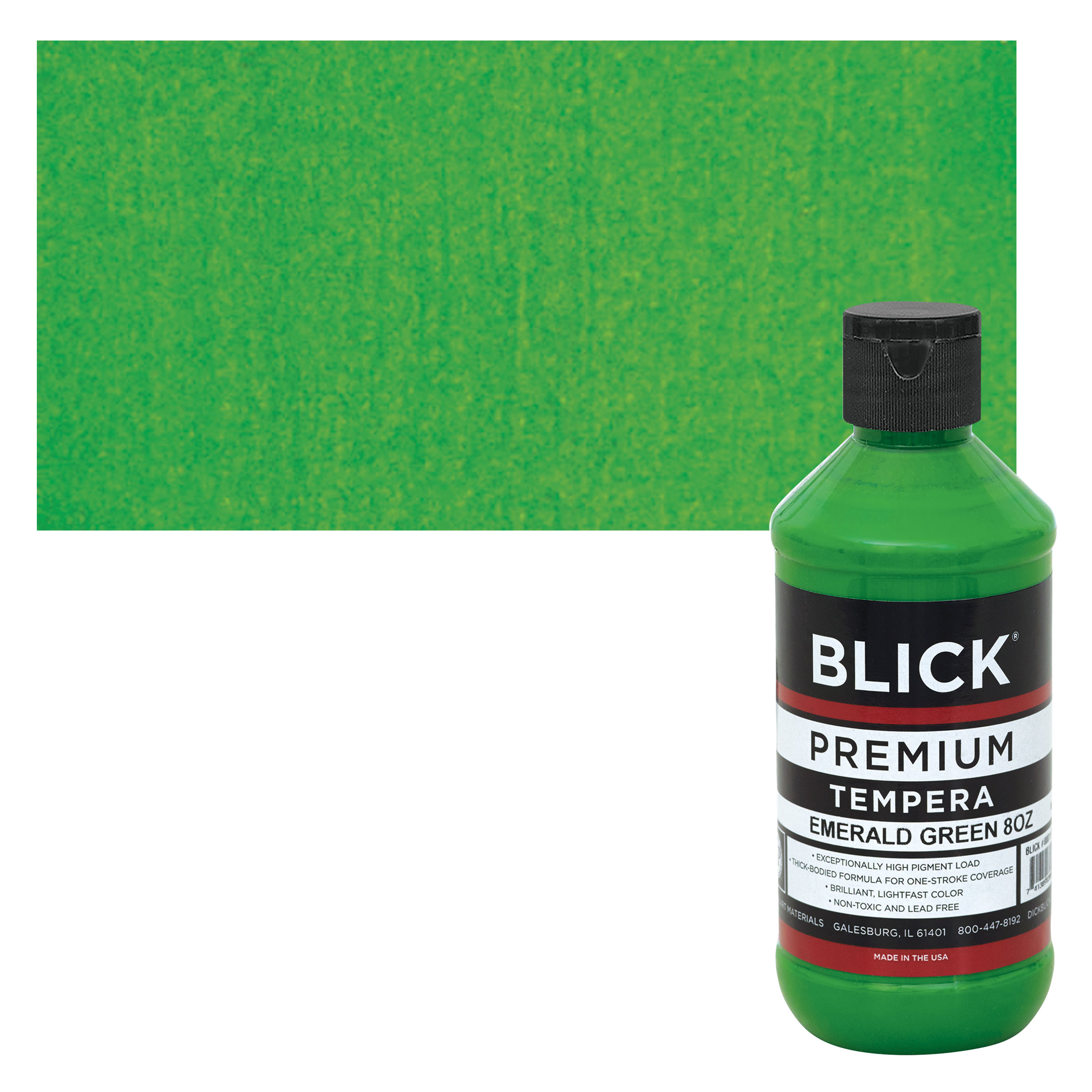 View Product DetailsBlick Premium Grade Tempera - Emerald Green, 8 oz bottle and swatch