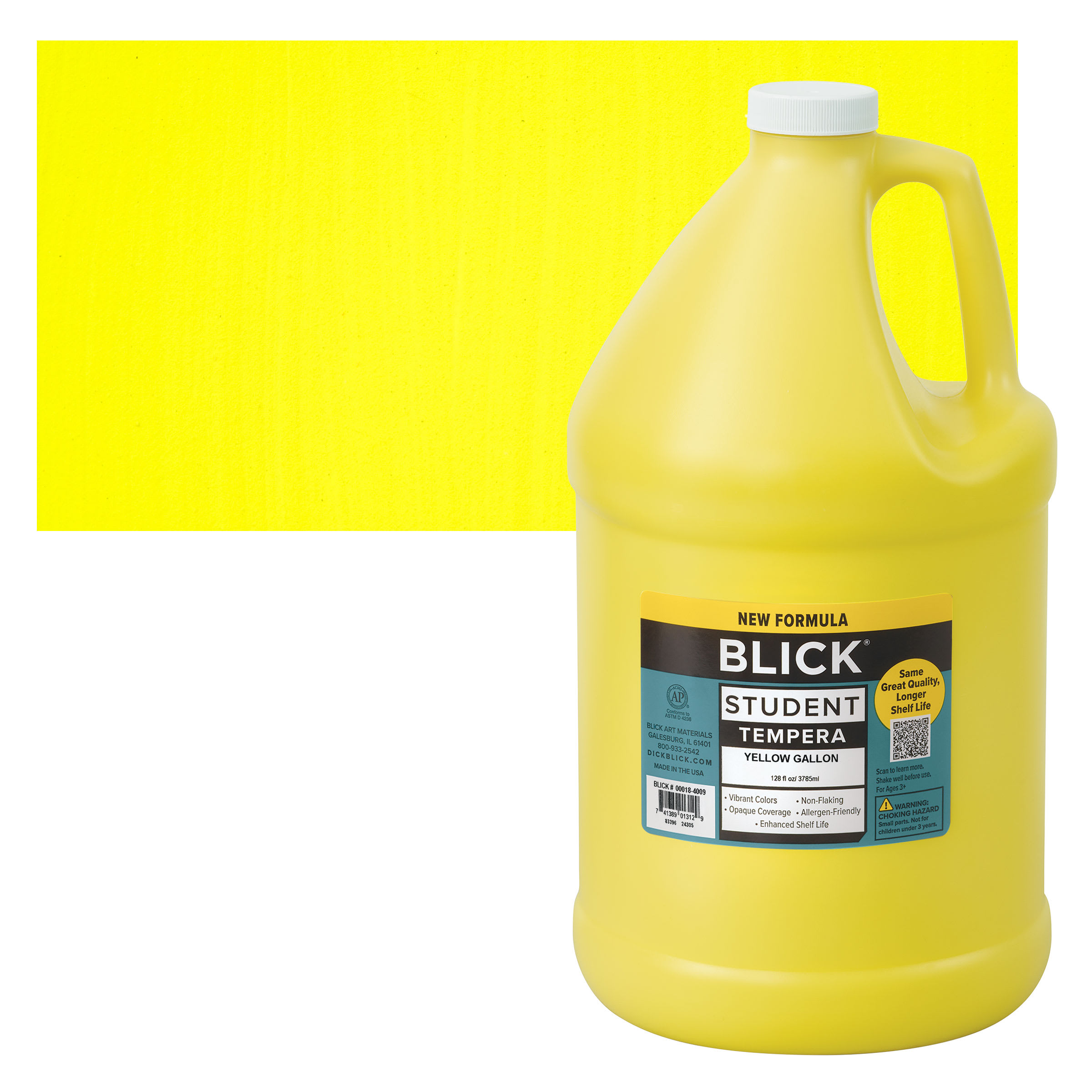 View Product DetailsBlick Student Tempera Paint - Yellow, 128 oz bottle and swatch