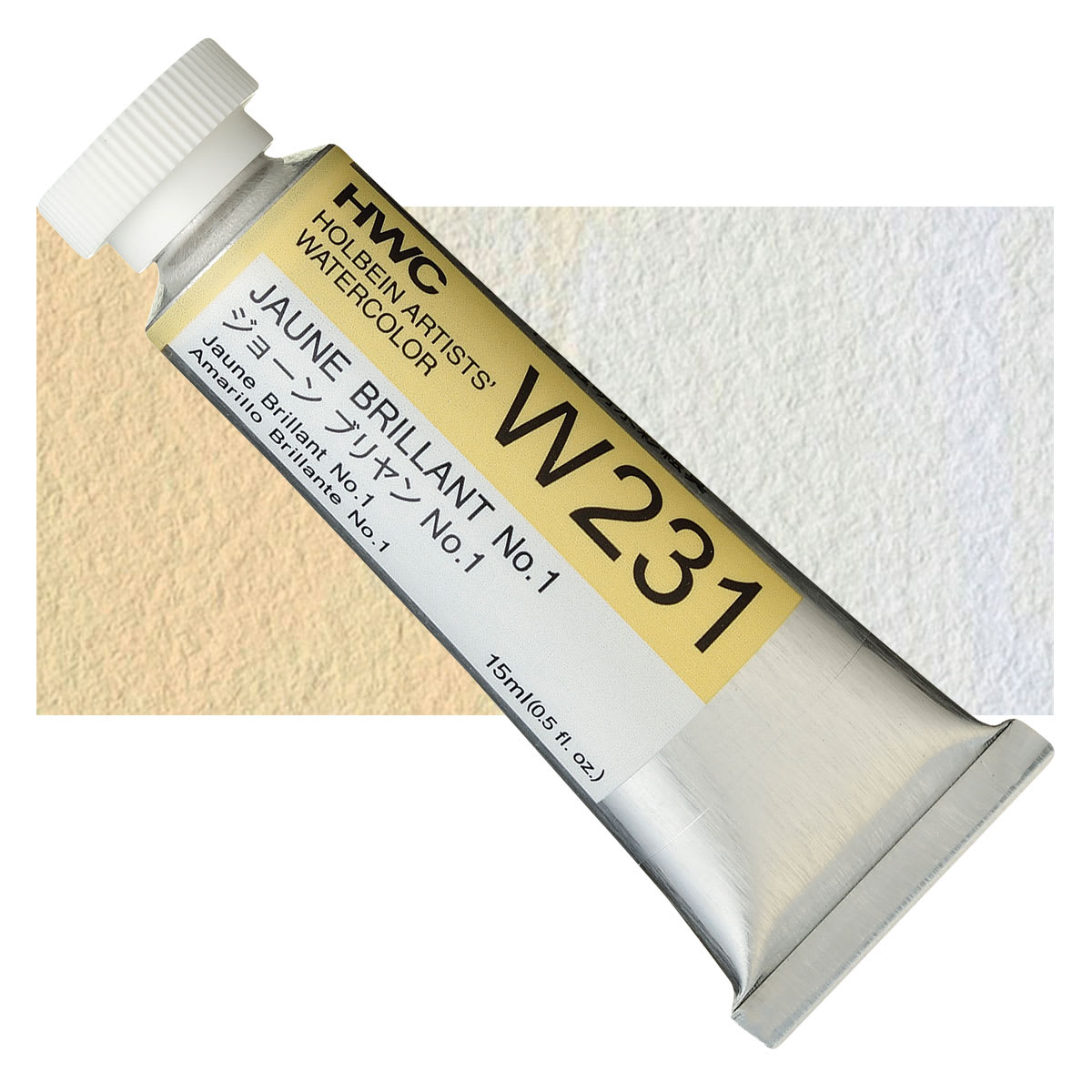 Holbein Artists' Watercolor - Jaune Brilliant 1, 15 ml tube and swatch