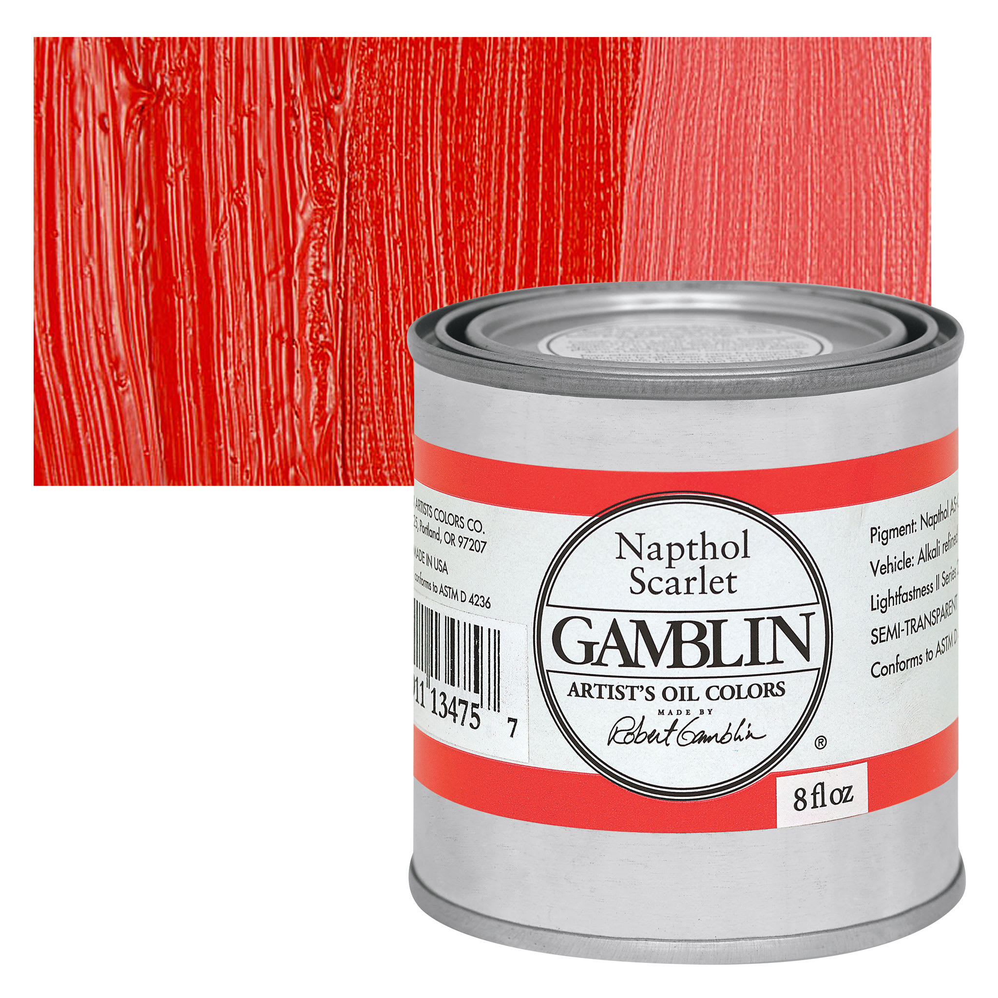 View Product DetailsGamblin Artist's Oil Color - Naphthol Scarlet, 8 oz Can and swatch