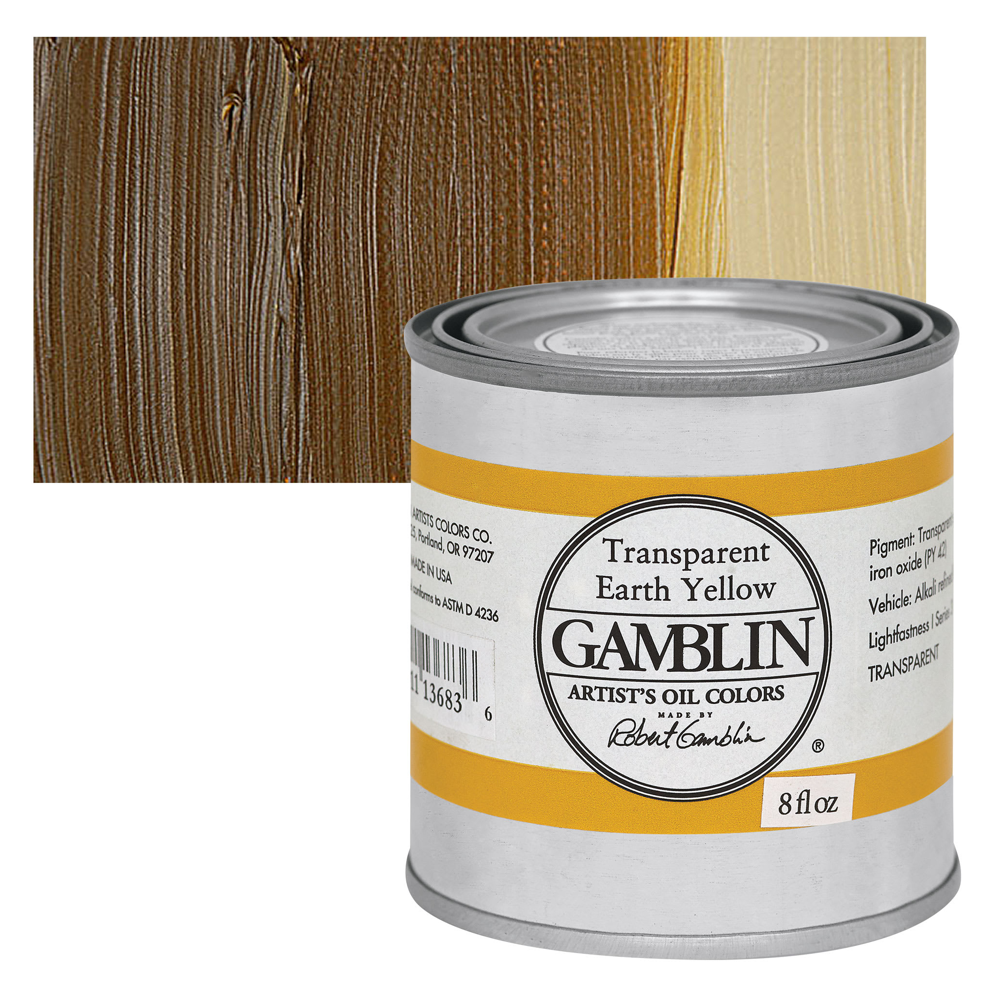 View Product DetailsGamblin Artist's Oil Color - Transparent Earth Yellow, 8 oz Can and swatch