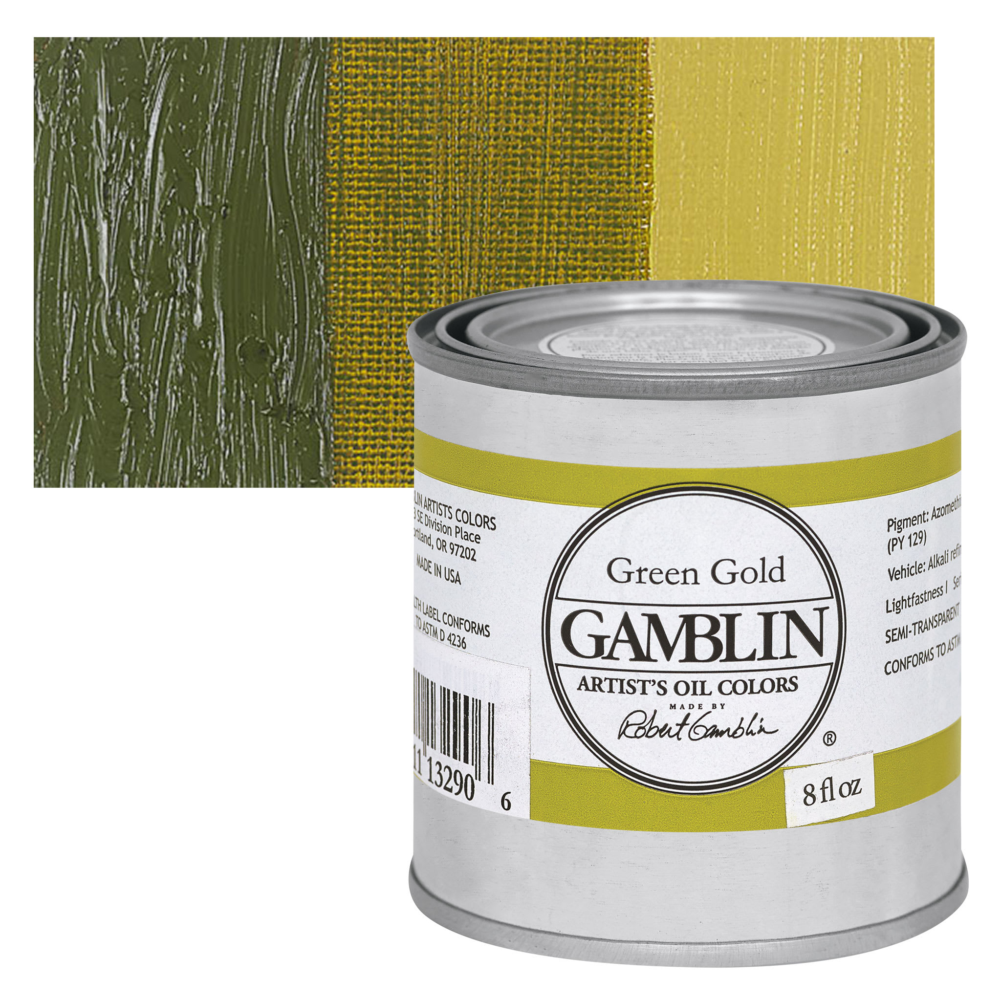View Product DetailsGamblin Artist's Oil Color - Green Gold, 8 oz can and swatch