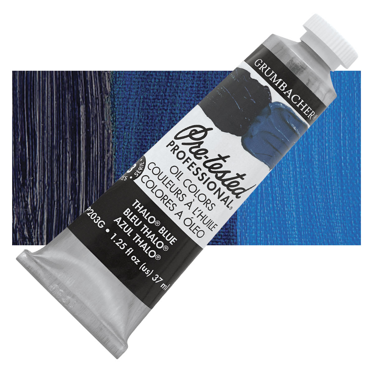 Grumbacher Pre-Tested Artists' Oil Color - Thalo Blue, 1.25 oz tube