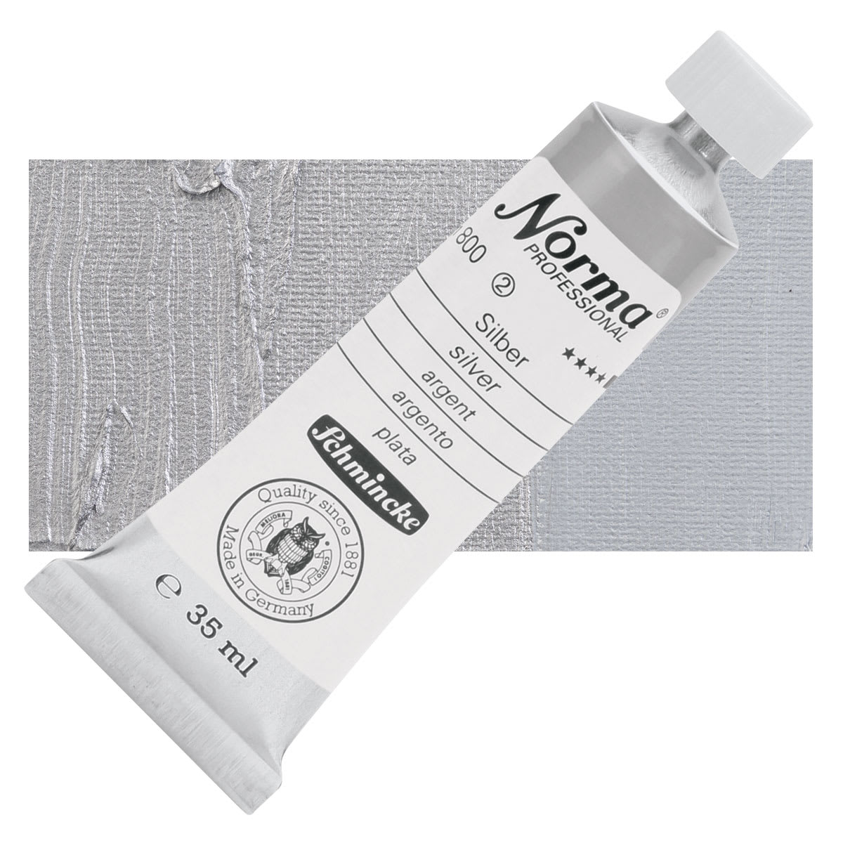 View Product DetailsSchmincke Norma Professional Oil Paint - Silver, 35 ml, Tube and swatch
