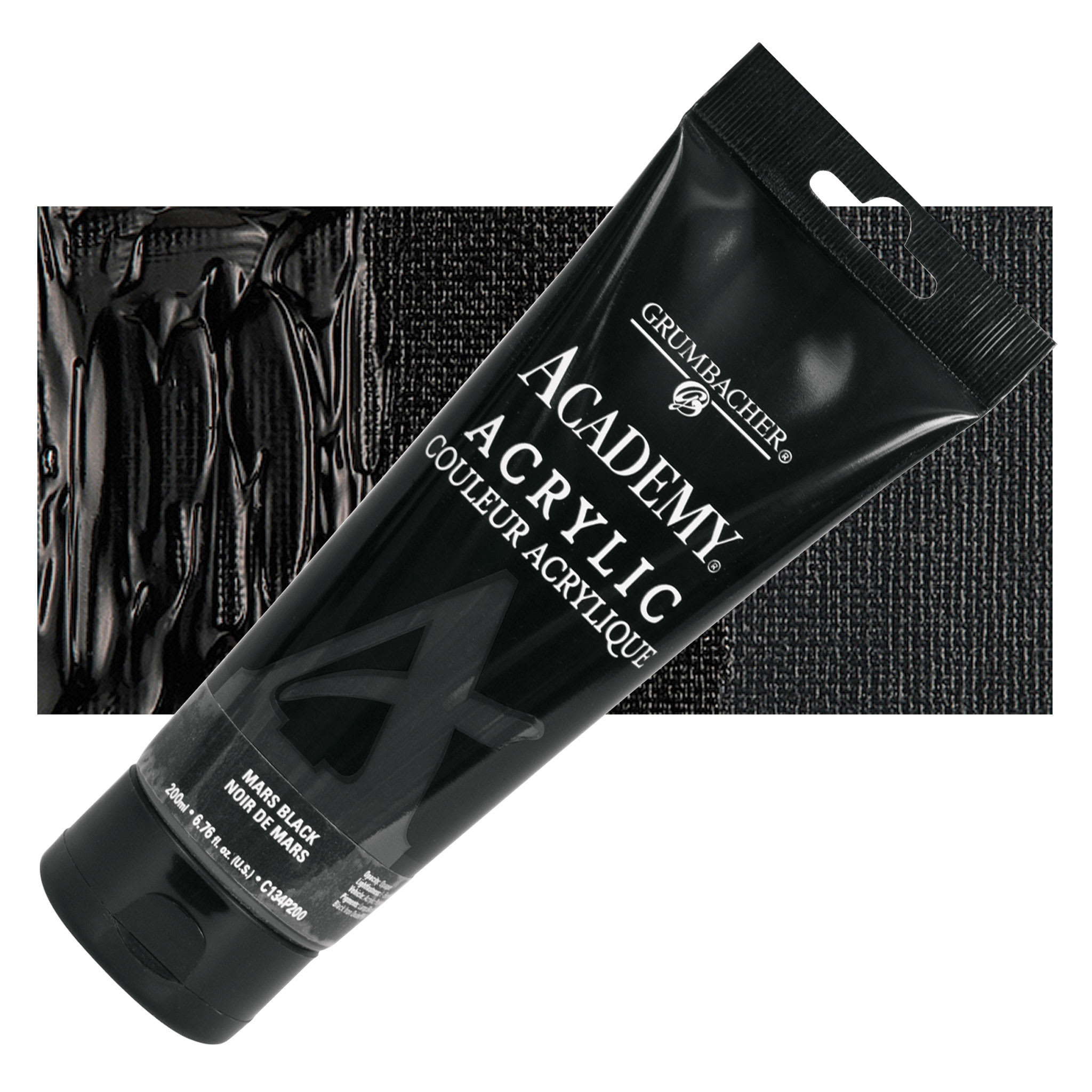 Grumbacher Academy Acrylic - Mars Black, 200 ml tube and swatch