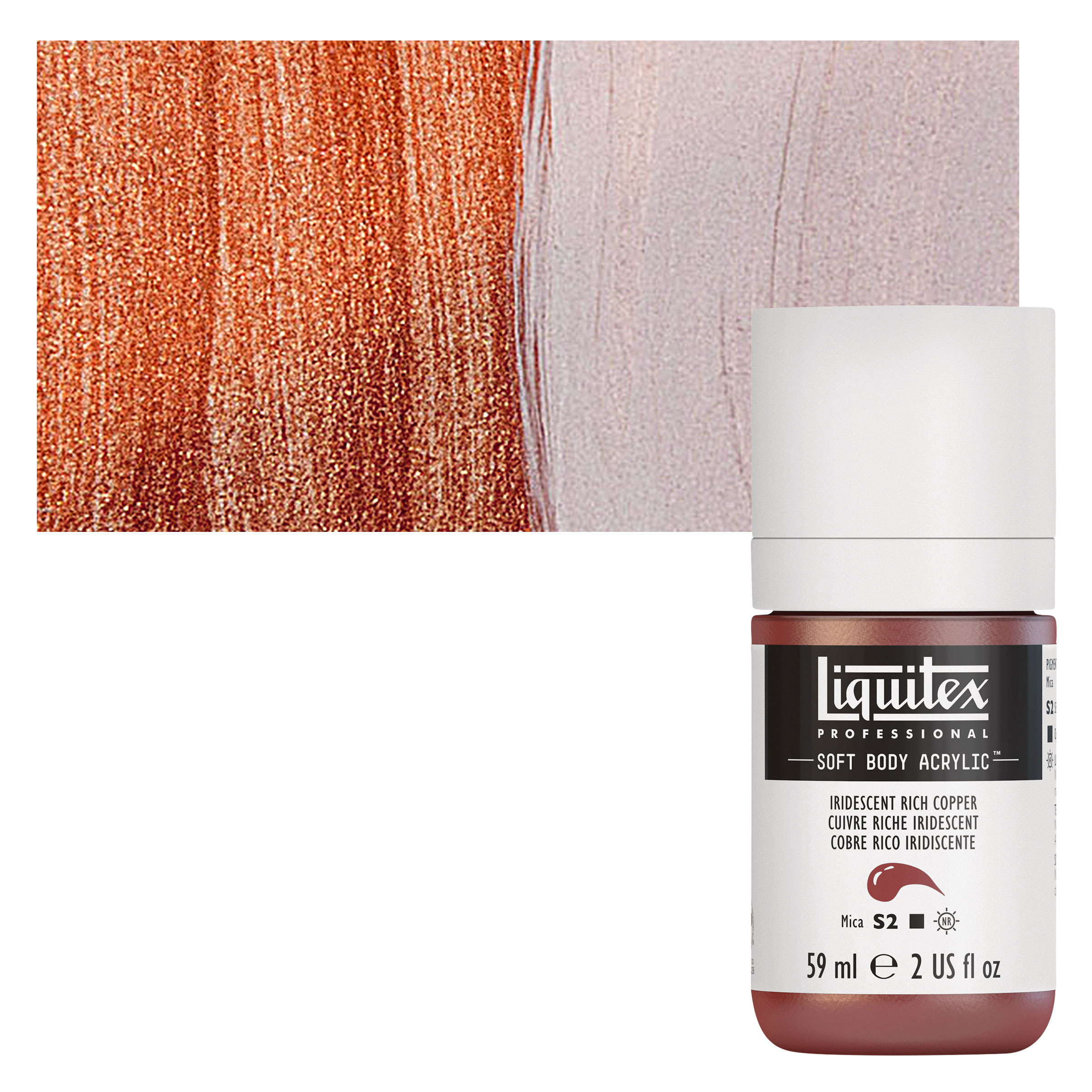 View Product DetailsLiquitex Soft Body Artist Acrylic - Iridescent Rich Copper, 59 ml bottle and swatch