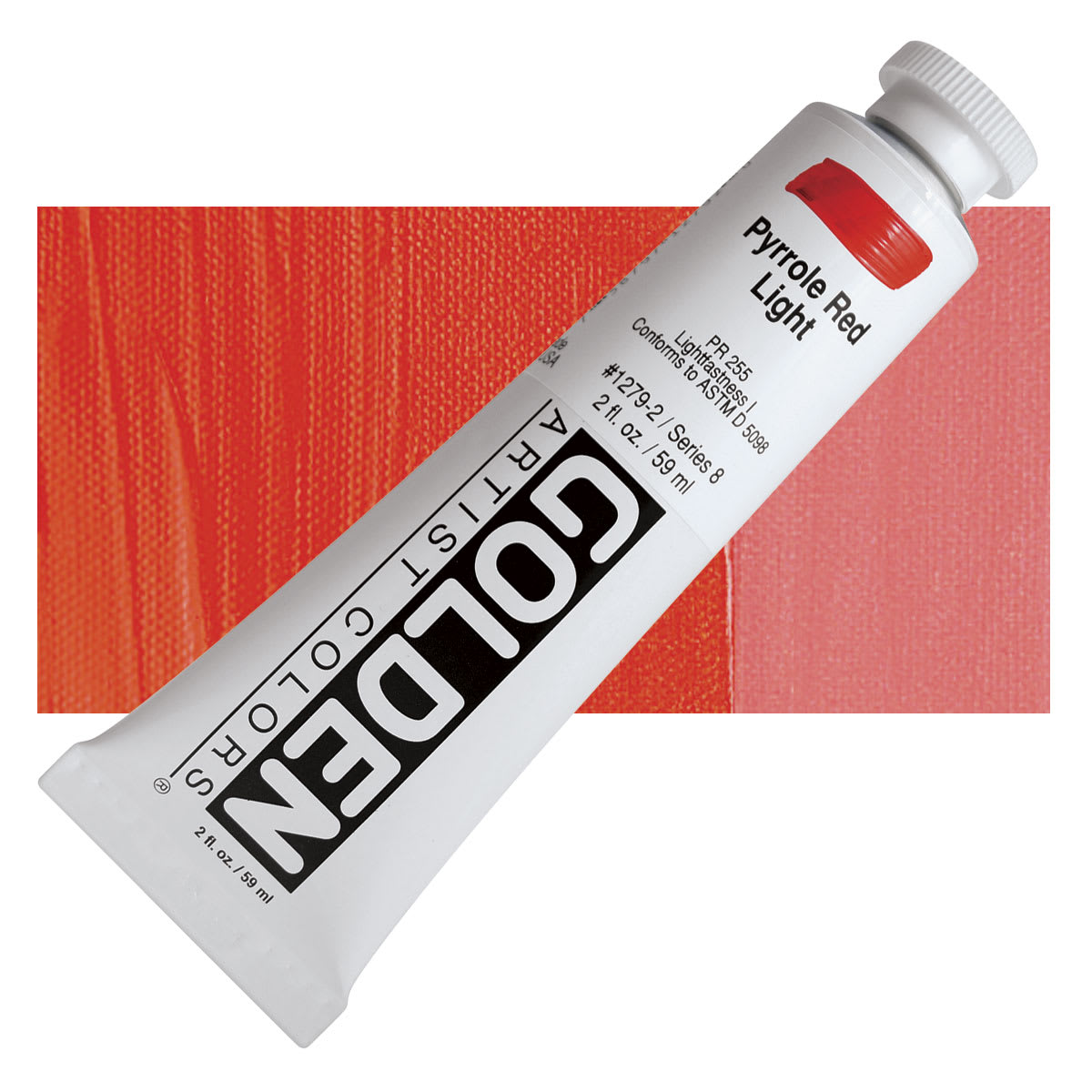 View Product DetailsGolden Heavy Body Artist Acrylic - Pyrrole Red Light, 2 oz Tube and swatch