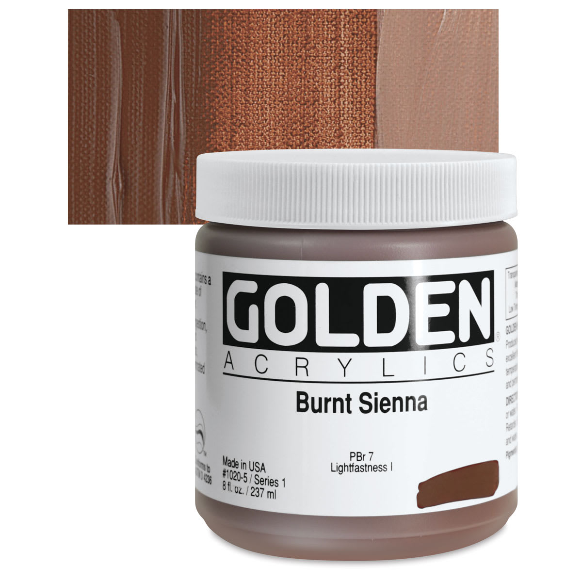Golden Heavy Body Artist Acrylics - Burnt Sienna, 8 oz Jar