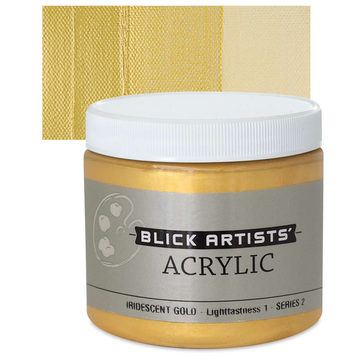 View Product DetailsBlick Artists' Acrylic - Iridescent Gold, 16 oz jar and swatch