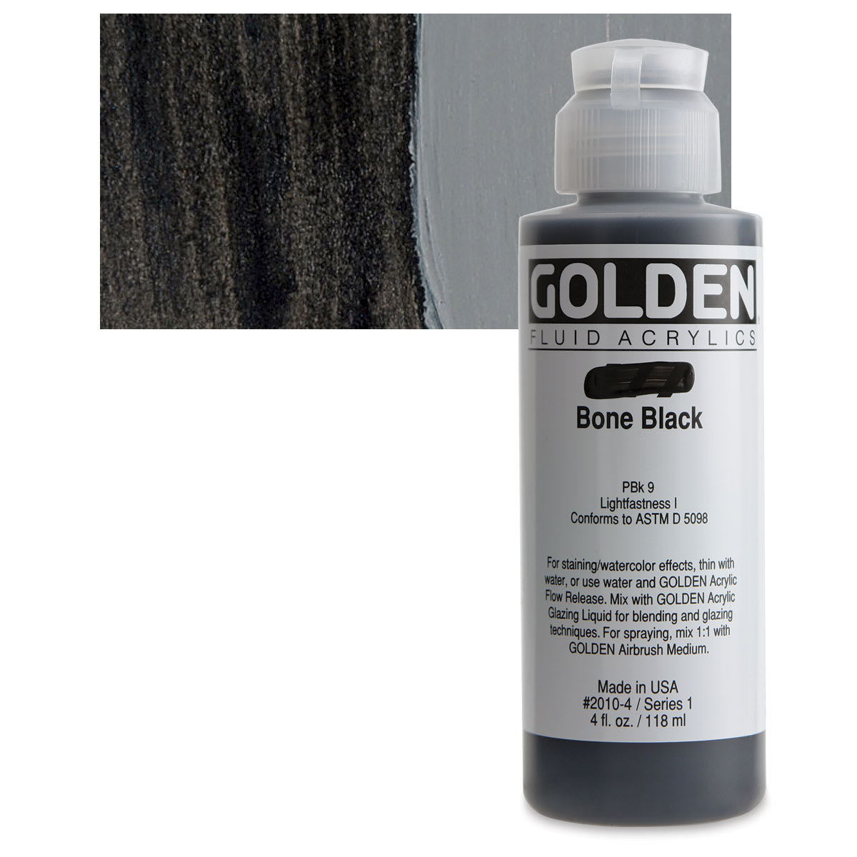 Golden Fluid Acrylics - Bone Black, 4 oz bottle