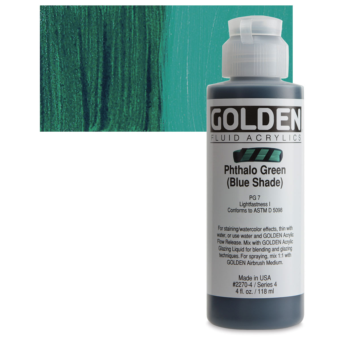 Golden Fluid Acrylics - Phthalo Green (Blue Shade), 4 oz bottle