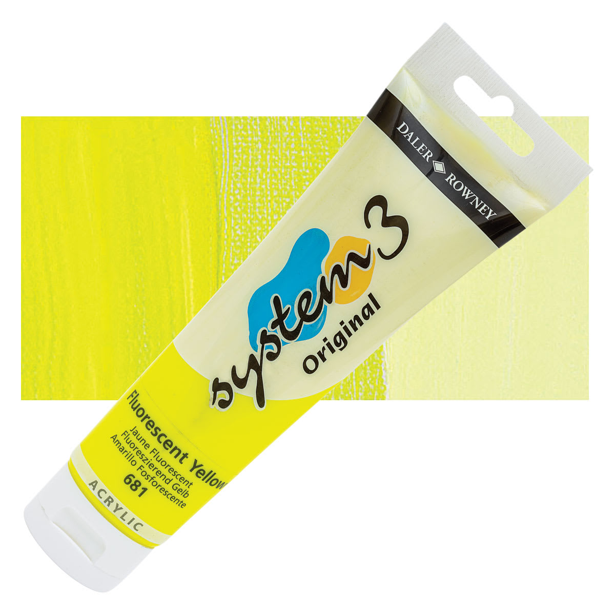 View Product DetailsDaler-Rowney System3 Acrylic - Fluorescent Yellow, 150 ml tube and swatch