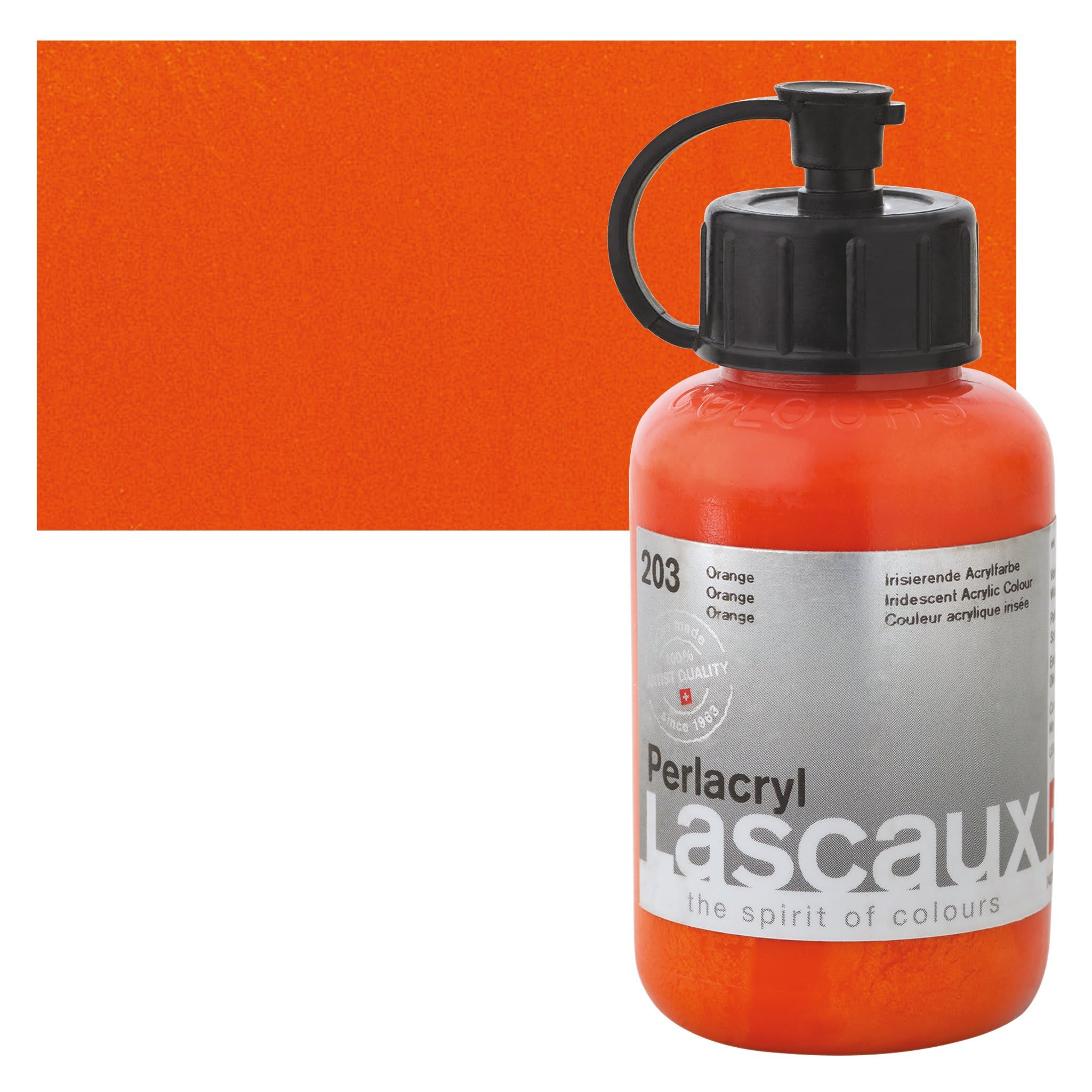 View Product DetailsLascaux Perlacryl Iridescent Acrylic - Orange, 85 ml bottle and swatch