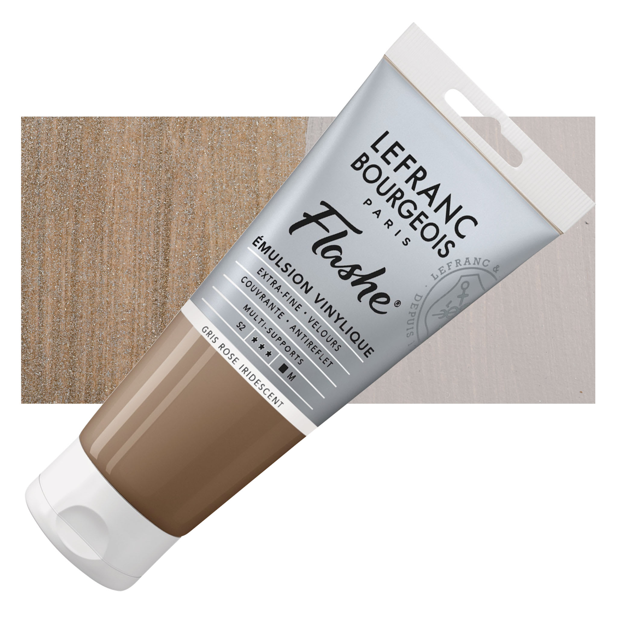 View Product DetailsLefranc & Bourgeois Flashe Vinyl Paint - Iridescent Pink Gray, 80 ml tube and swatch