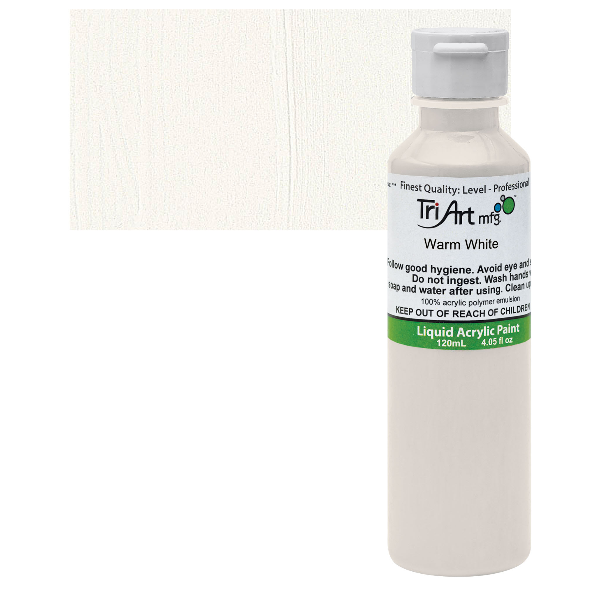 View Product DetailsTri-Art Liquid Artist Acrylic - Warm White, 120 ml bottle and swatch