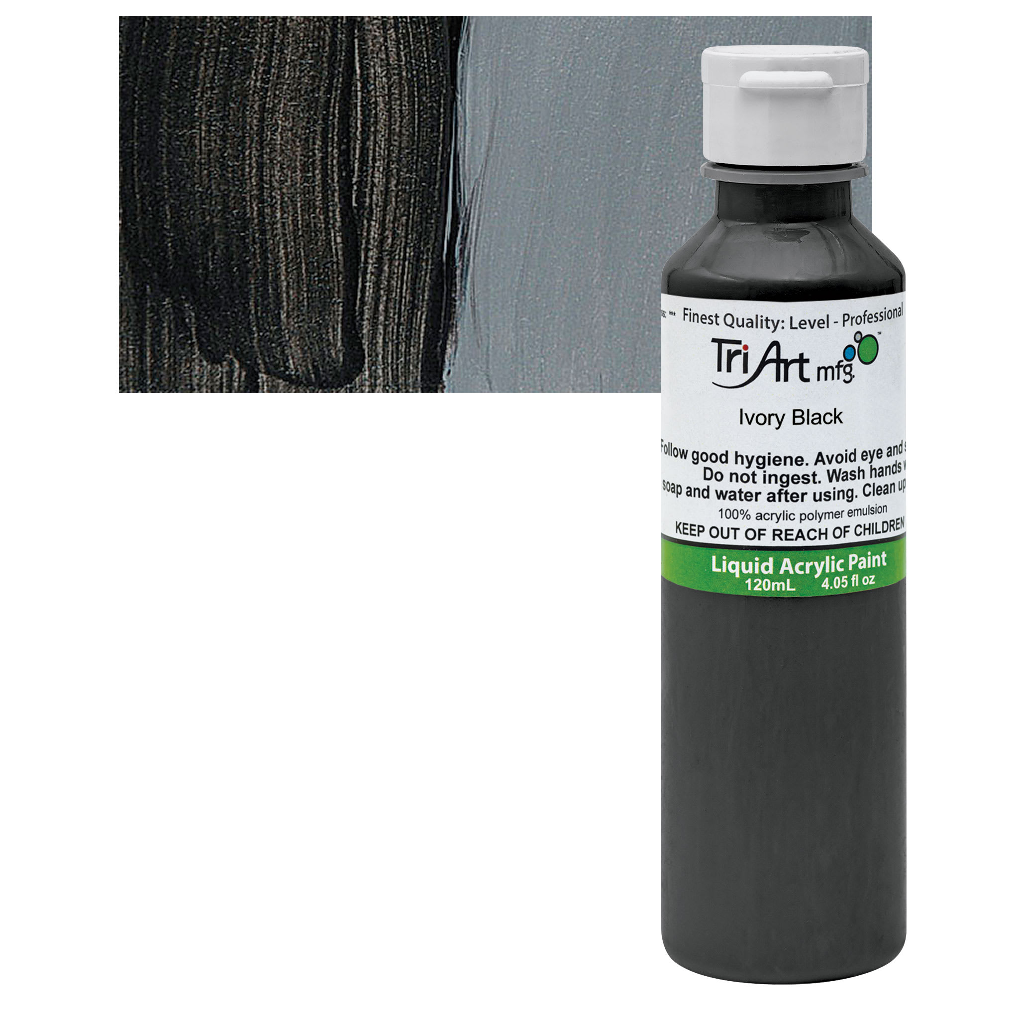 Tri-Art Liquid Artist Acrylics - Ivory Black, 120 ml bottle