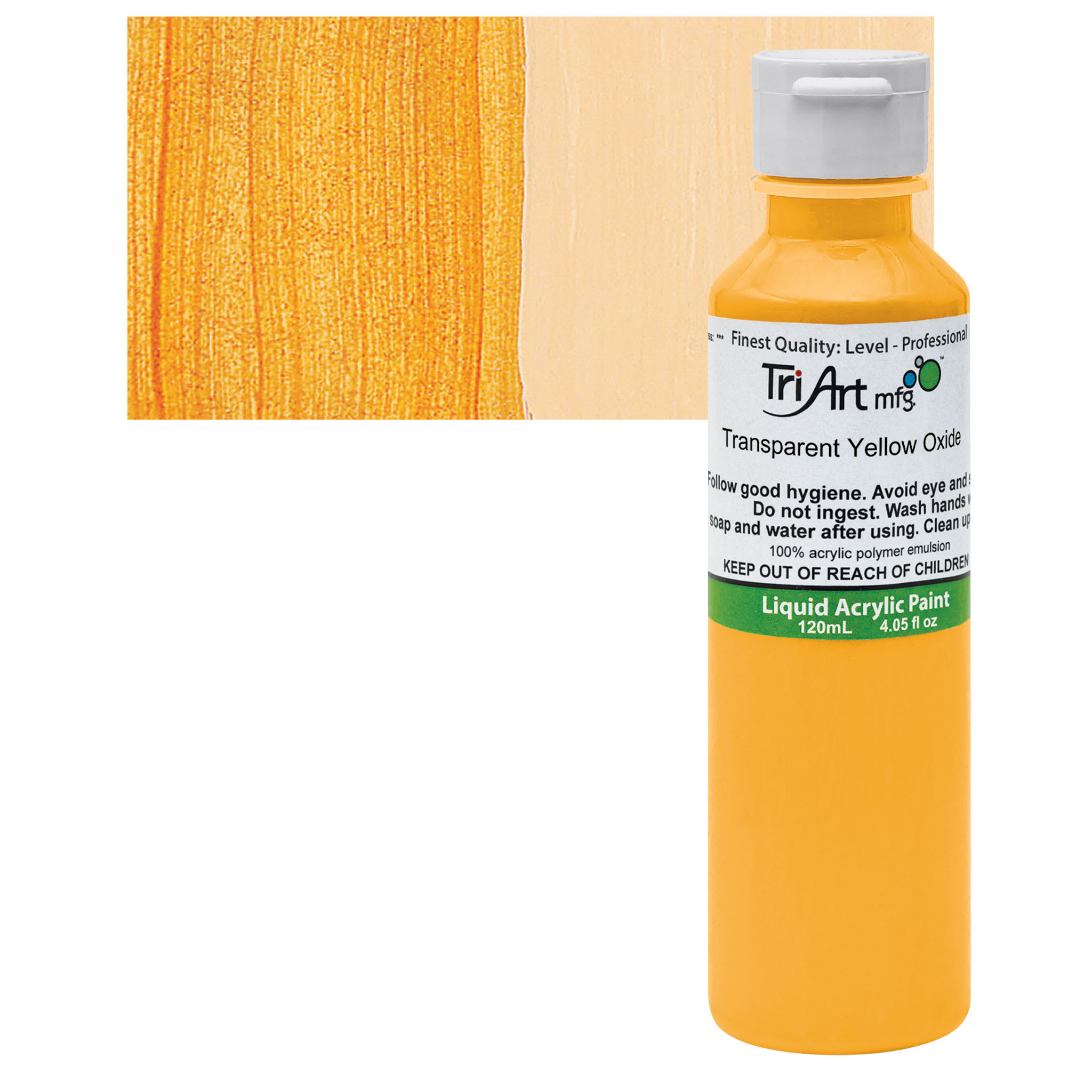 Tri-Art Liquid Artist Acrylics - Transparent Yellow Oxide, 120 ml bottle