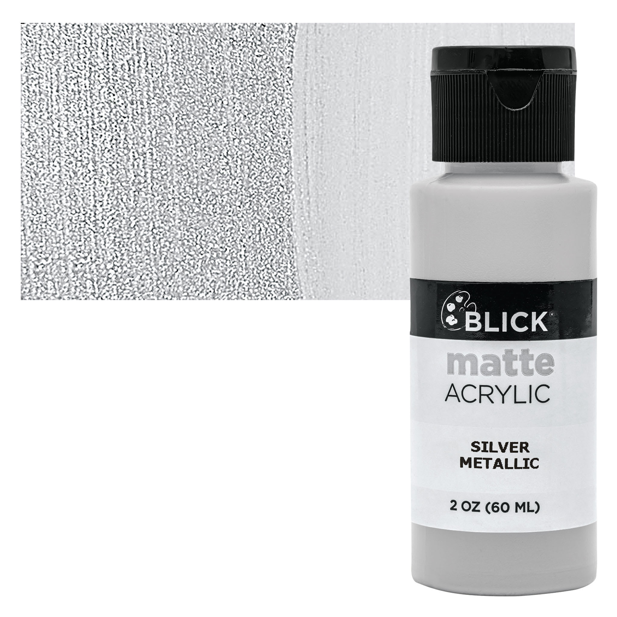 View Product DetailsBlick Matte Acrylic - Silver Metallic, 2 oz bottle and swatch