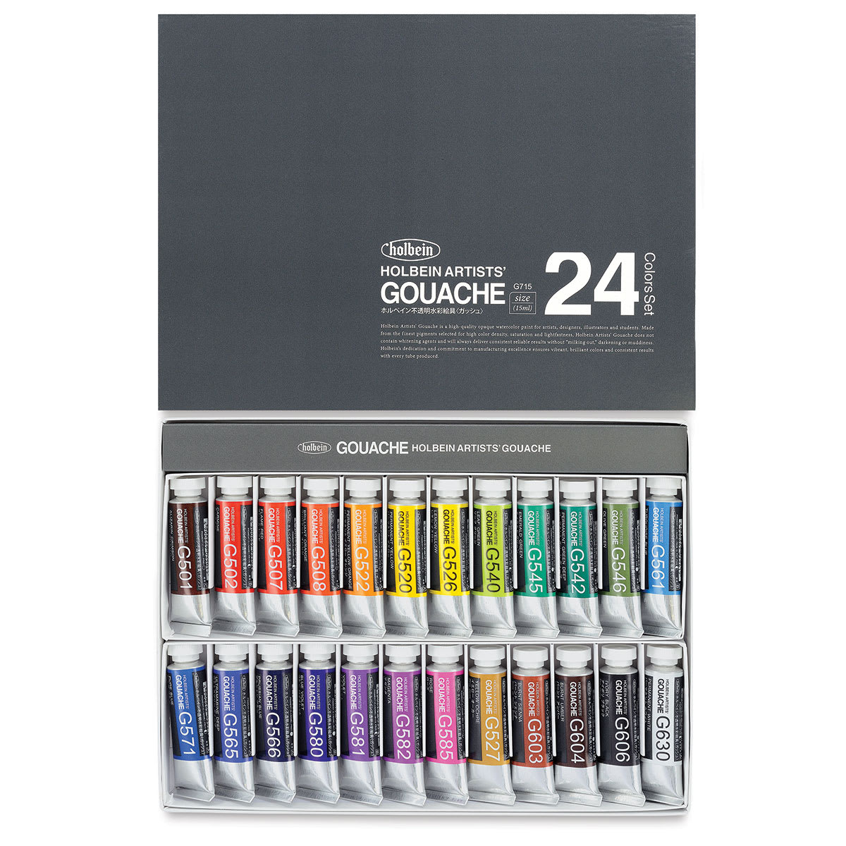 Holbein Artists' Gouache - Set of 24, Assorted Colors, 15 ml Tubes