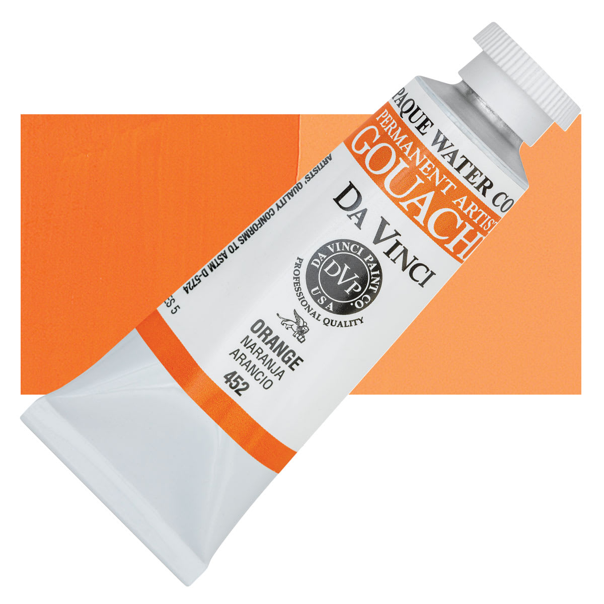 Da Vinci Professional Gouache - Orange, 37 ml tube and swatch