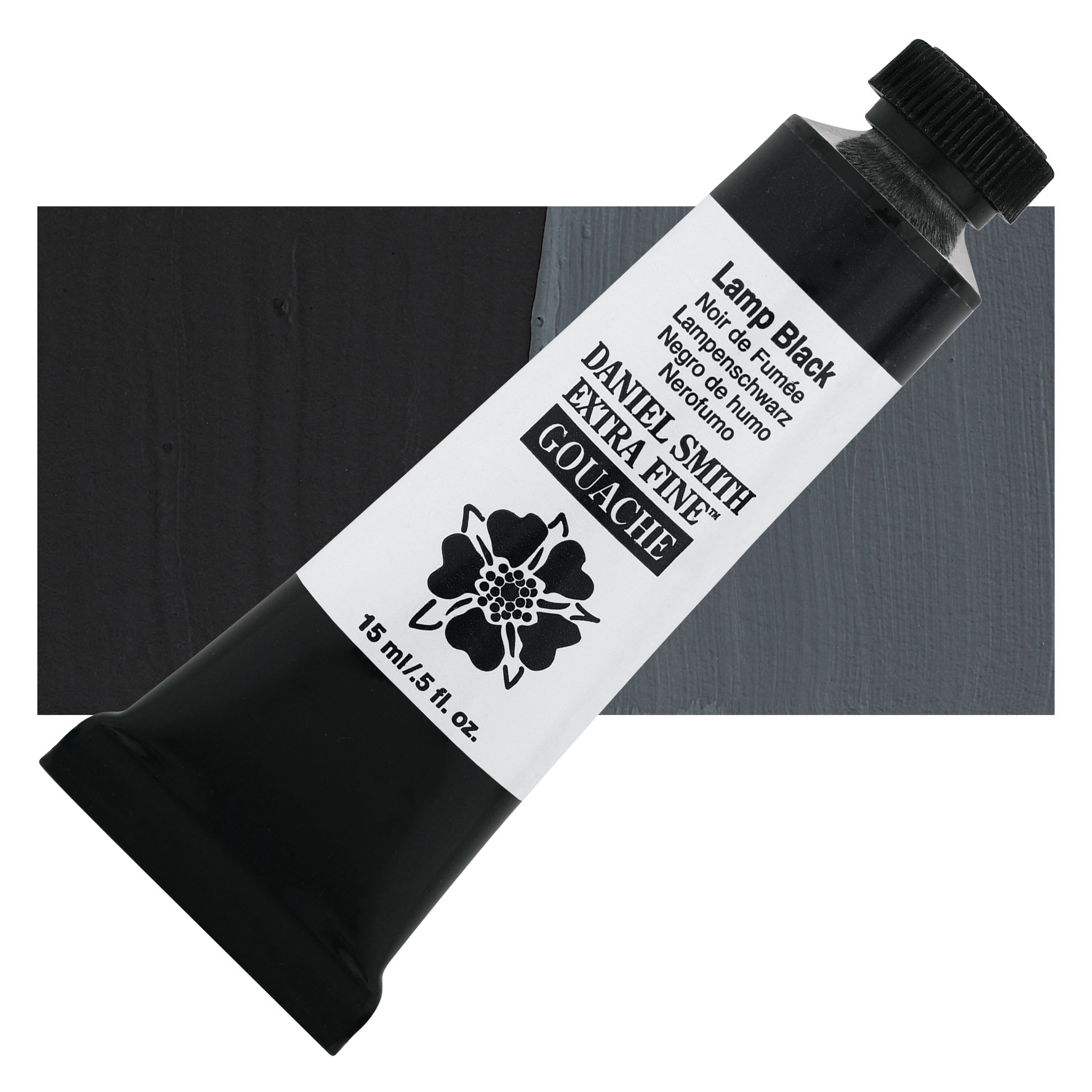 View Product DetailsDaniel Smith Extra Fine Gouache - Lamp Black, 15 ml Tube and swatch
