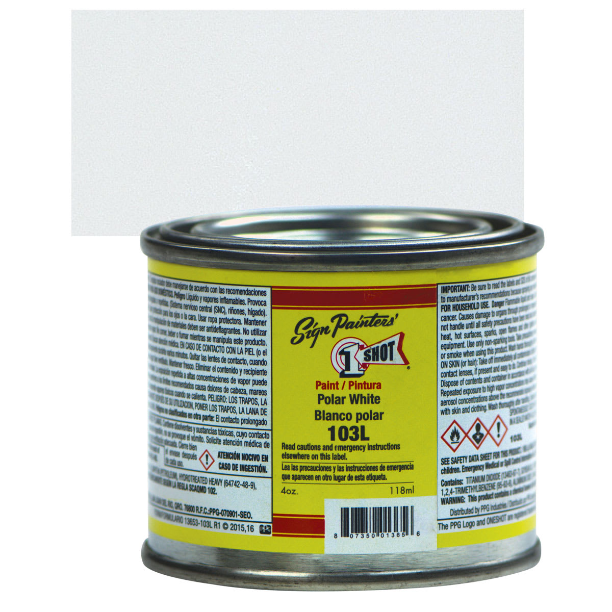 View Product Details1-Shot Lettering Enamel - Polar White, 4 oz can and swatch