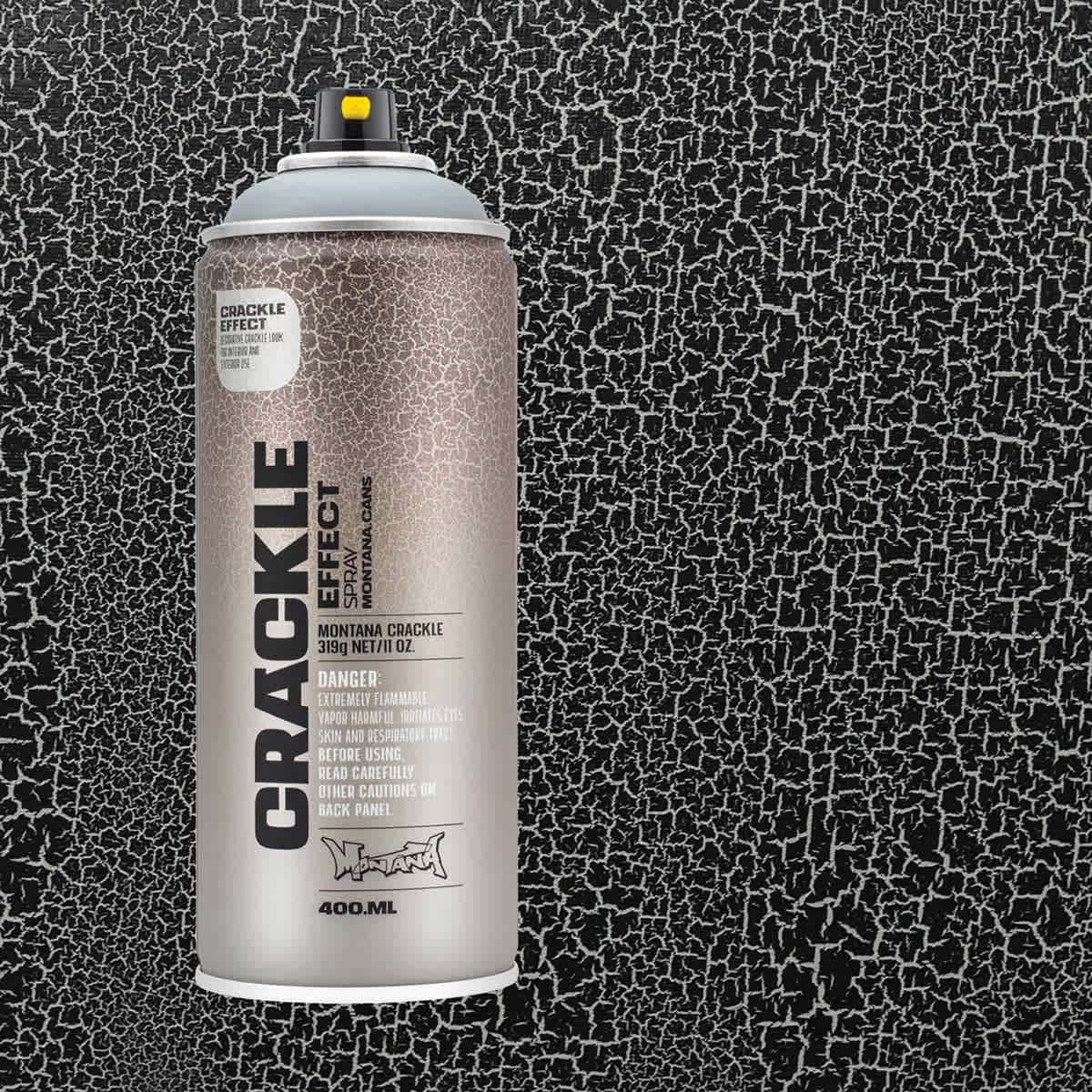 View Product DetailsMontana Crackle Effect Spray - Squirrel Grey Spray can on swatch showing crackle effect possible