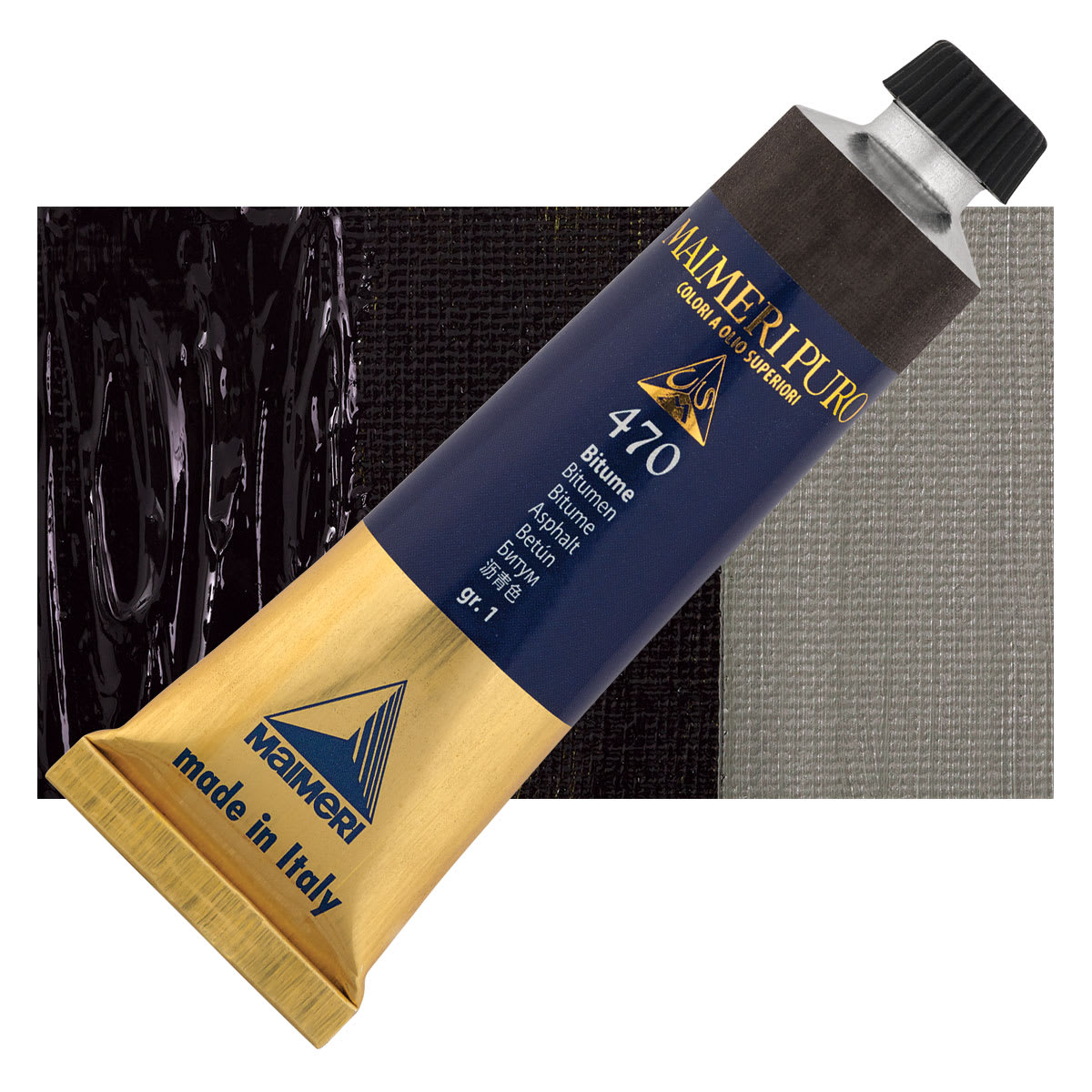 Maimeri Puro Oil Color - Bitumen, 40 ml Tube and swatch
