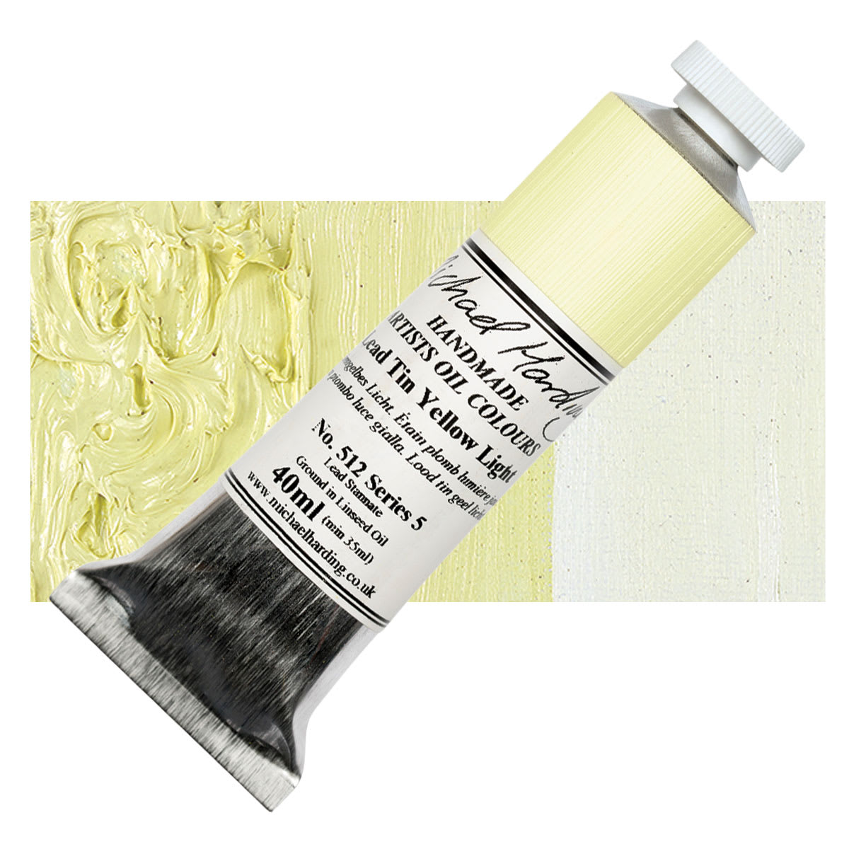 View Product DetailsMichael Harding Artists Oil Paint - Lead Tin Yellow, 40 ml tube and swatch