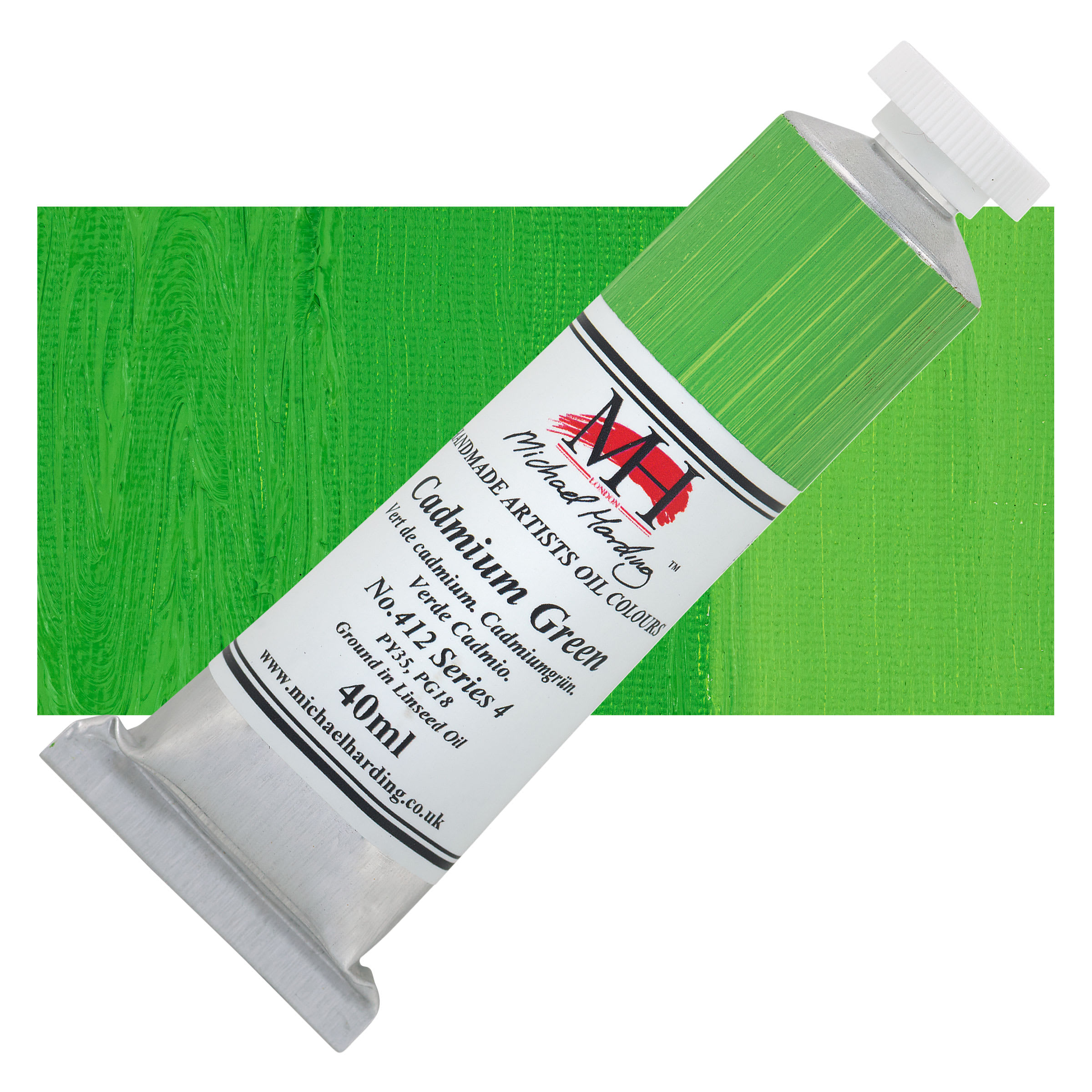Michael Harding Artists Oil Color - Cadmium Green, 40 ml tube and swatch