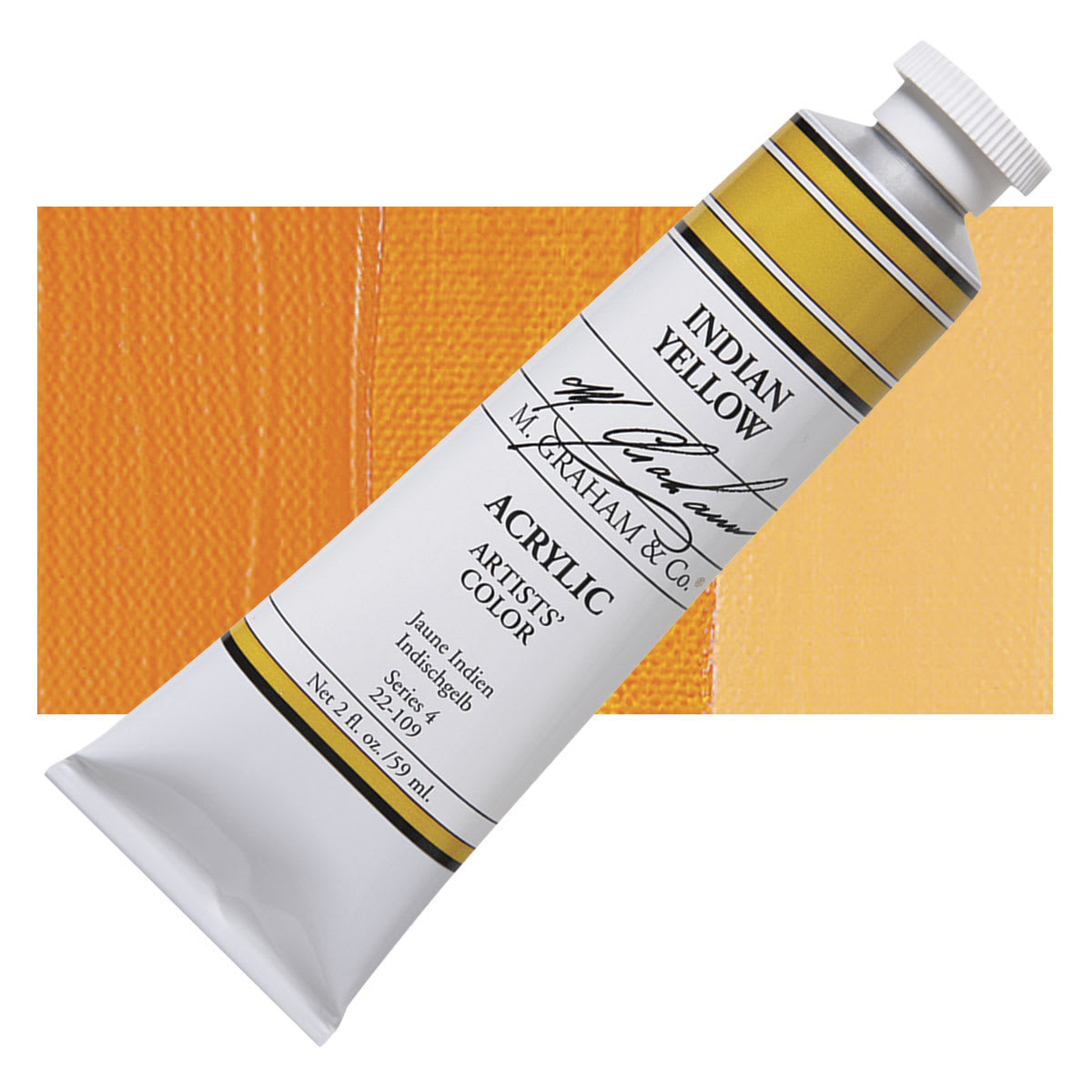 View Product DetailsM. Graham Artists' Acrylic - Indian Yellow, 59 ml tube and swatch