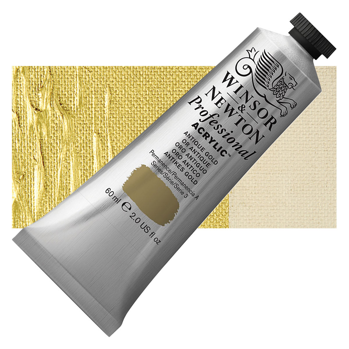 View Product DetailsWinsor & Newton Professional Acrylic Paint - Antique Gold, 60 ml tube and swatch