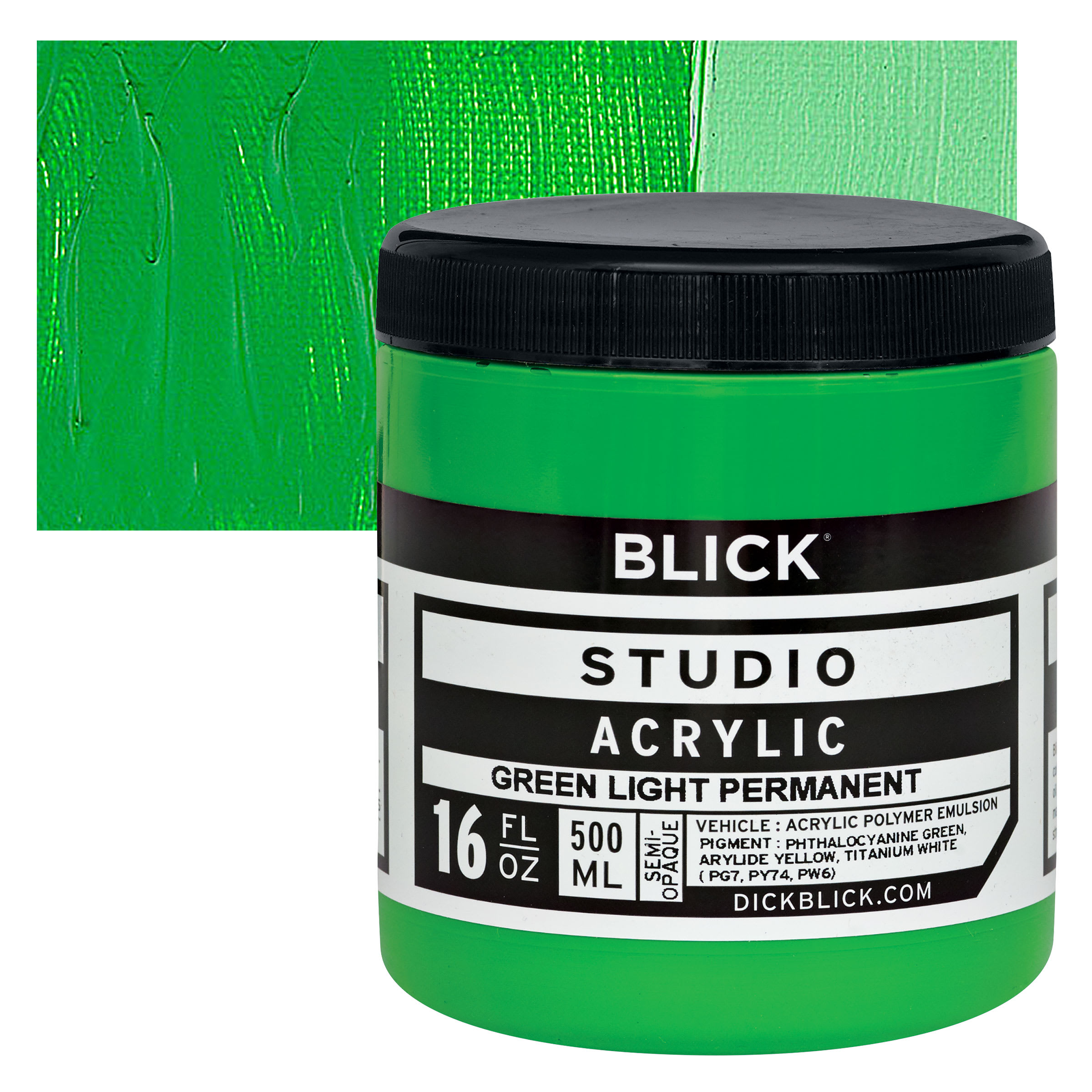 Blick Studio Acrylics - Green Light Permanent, 16 oz jar