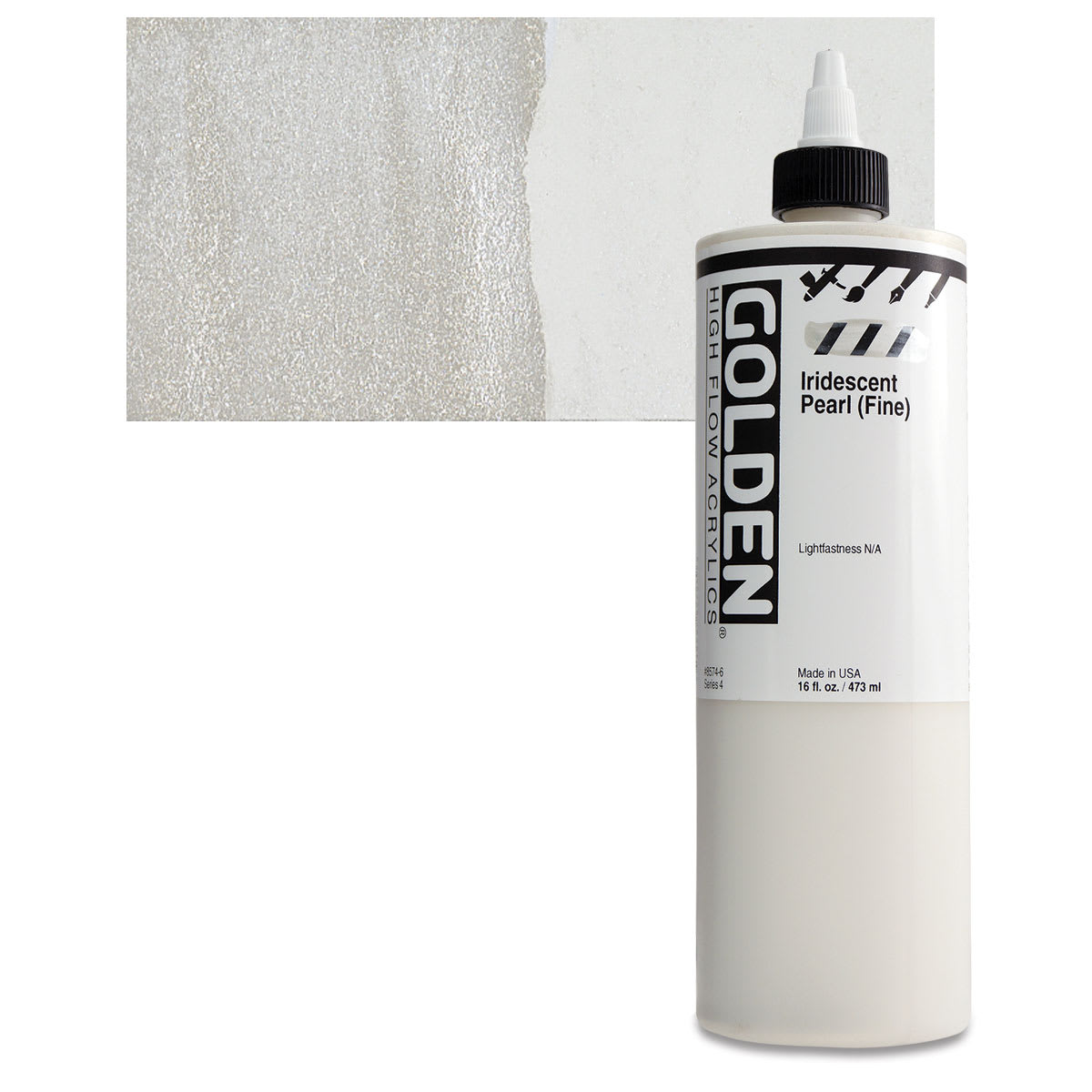View Product DetailsGolden High Flow Acrylic Paint - Iridescent Pearl (Fine), 16 oz bottle and swatch
