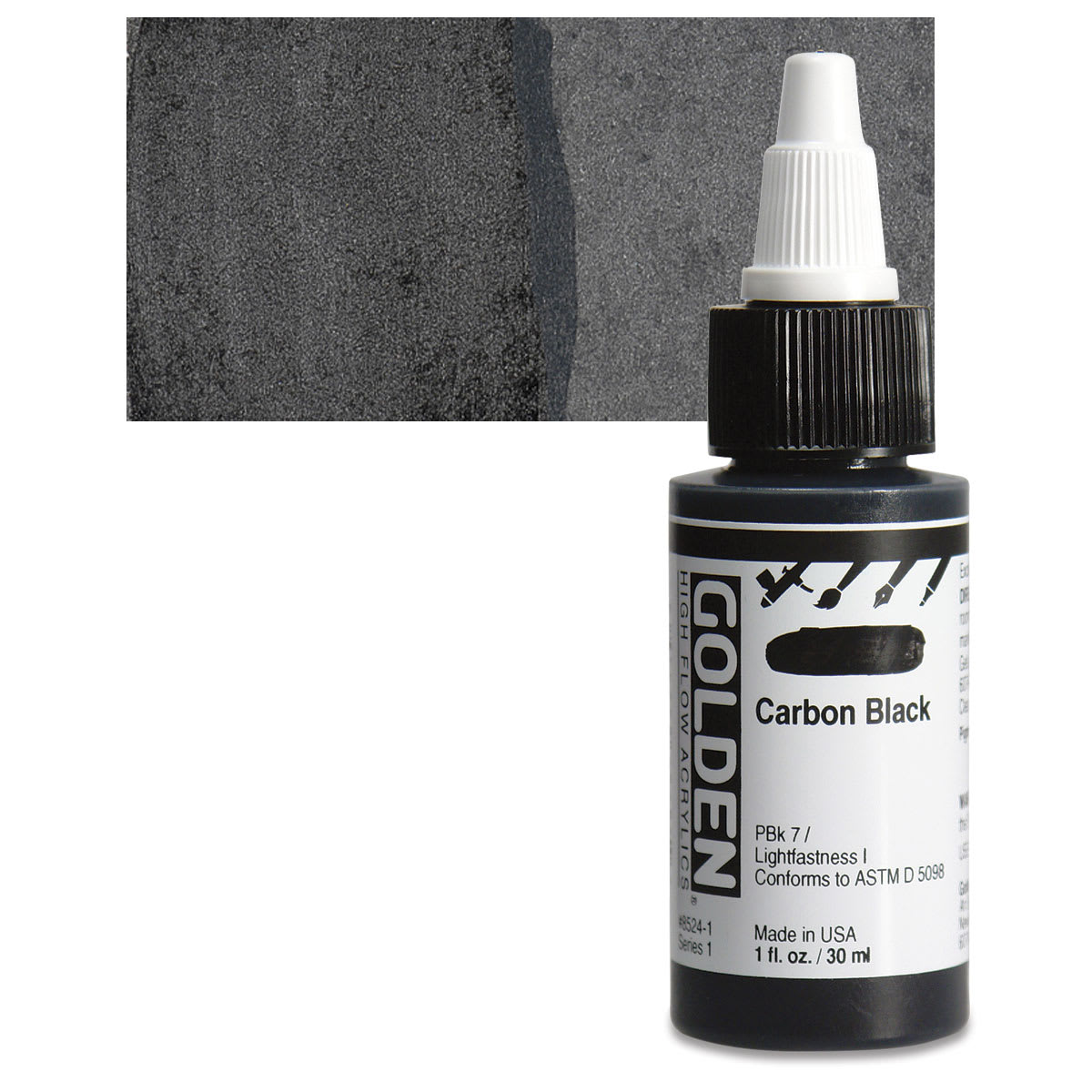 Golden High Flow Acrylics - Carbon Black, 1 oz bottle