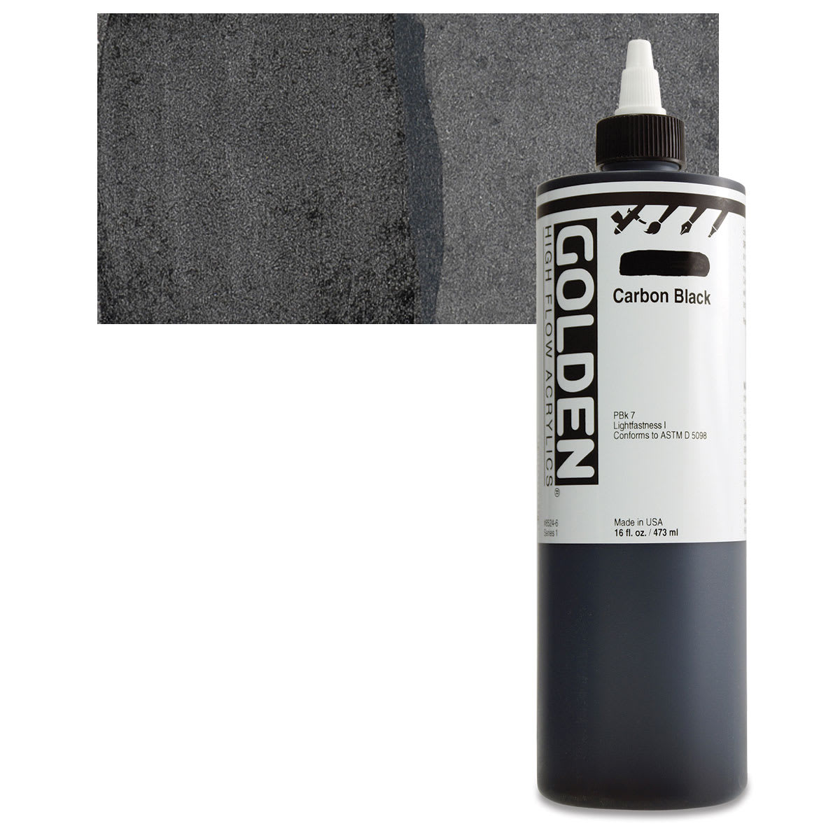 Golden High Flow Acrylics - Carbon Black, 16 oz bottle