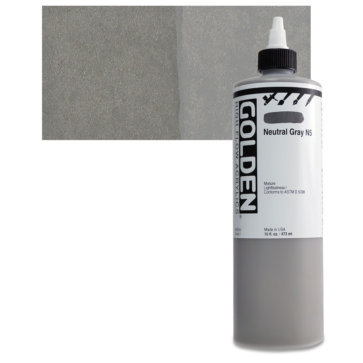 Golden High Flow Acrylics - Neutral Gray N5, 16 oz bottle