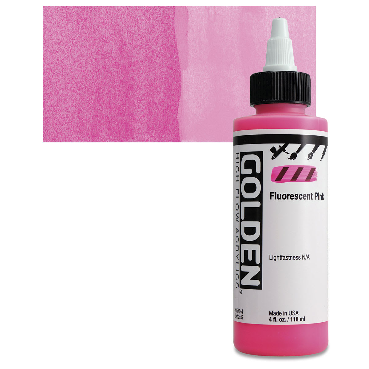 View Product DetailsGolden High Flow Acrylic Paint - Fluorescent Pink, 4 oz bottle and swatch