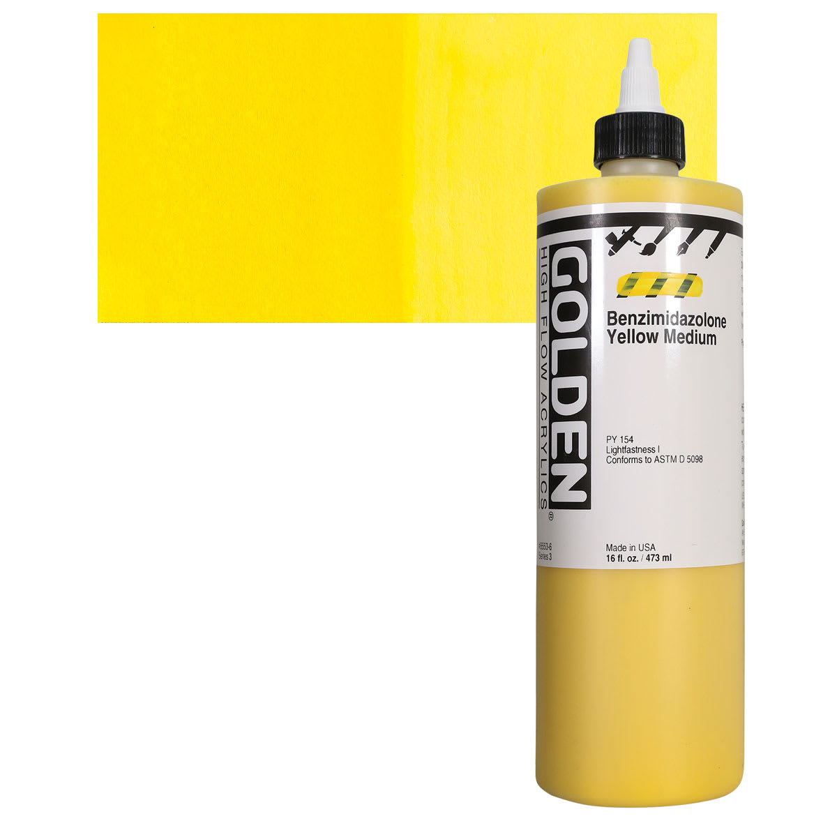 Golden High Flow Acrylics - Benzimidazolone Yellow Medium, 16 oz bottle