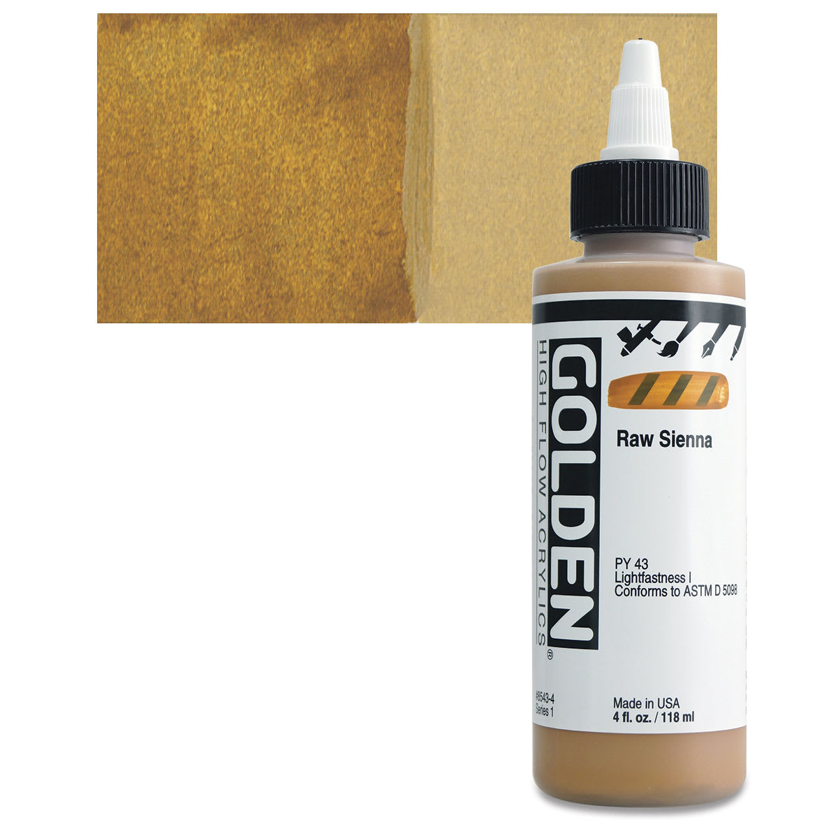 Golden High Flow Acrylics - Raw Sienna, 4 oz bottle