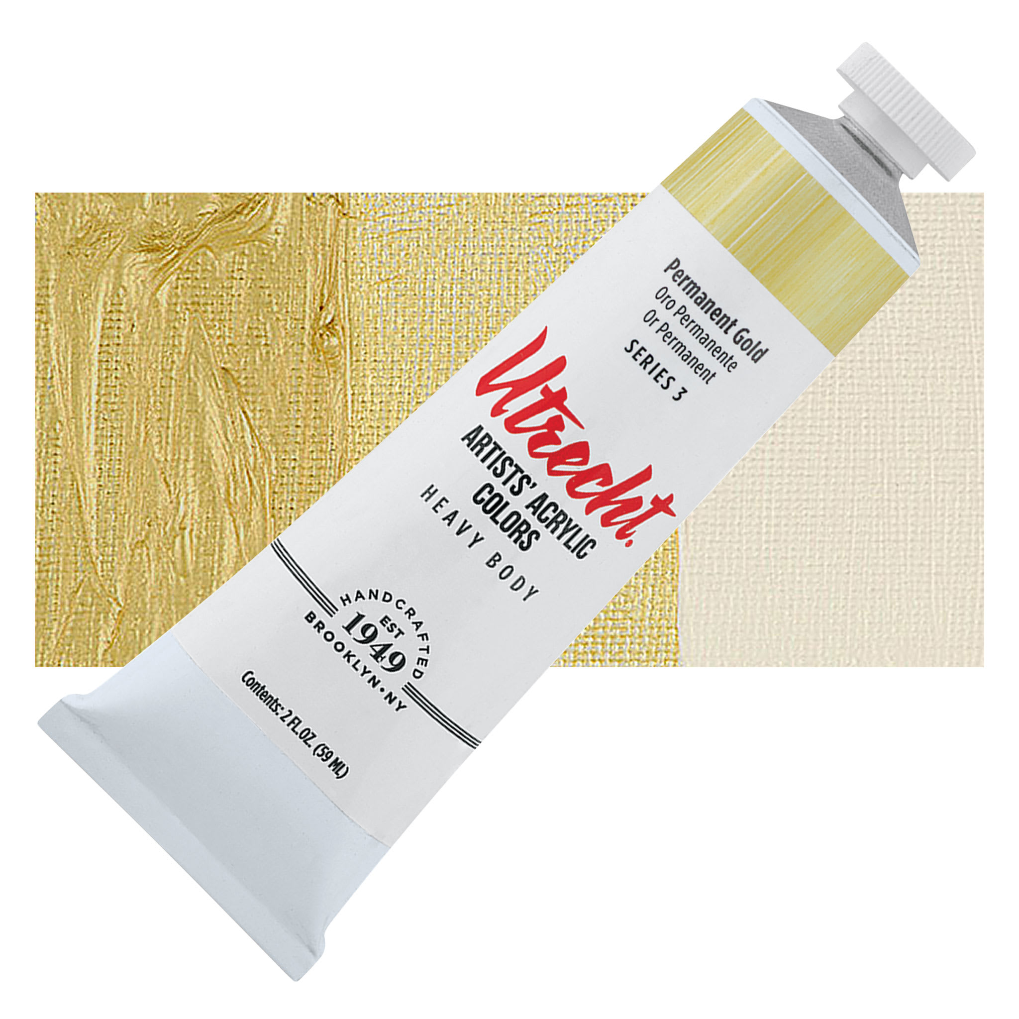 Utrecht Artists' Acrylic Paint - Permanent Gold, 2 oz tube