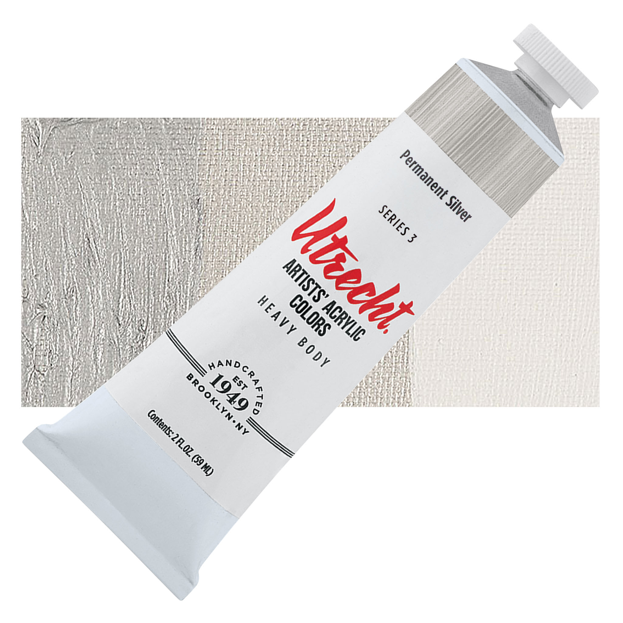Utrecht Artists' Acrylic Paint - Permanent Silver, 2 oz tube