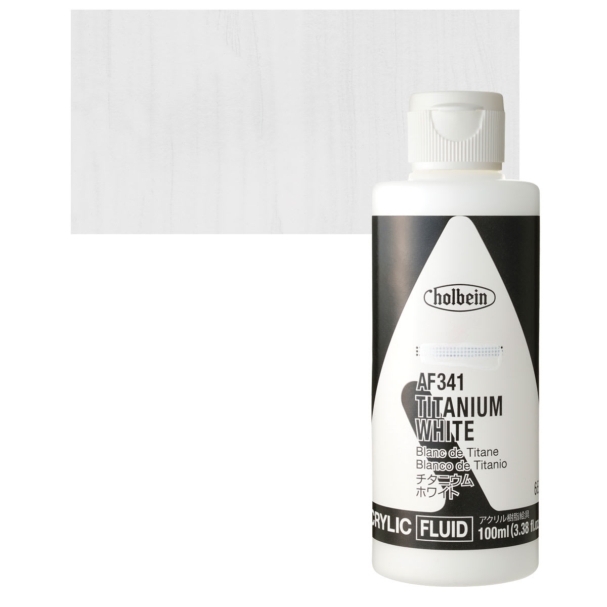 View Product DetailsHolbein Fluid Acrylic Paint - Titanium White, 100 ml Bottle and swatch