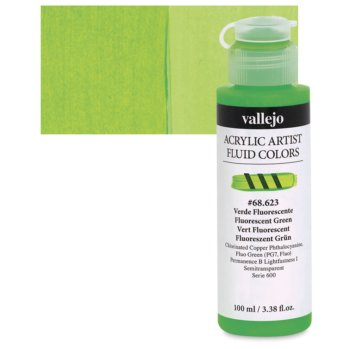 View Product DetailsVallejo Fluid Acrylic - Fluorescent Green, 100 ml and swatch