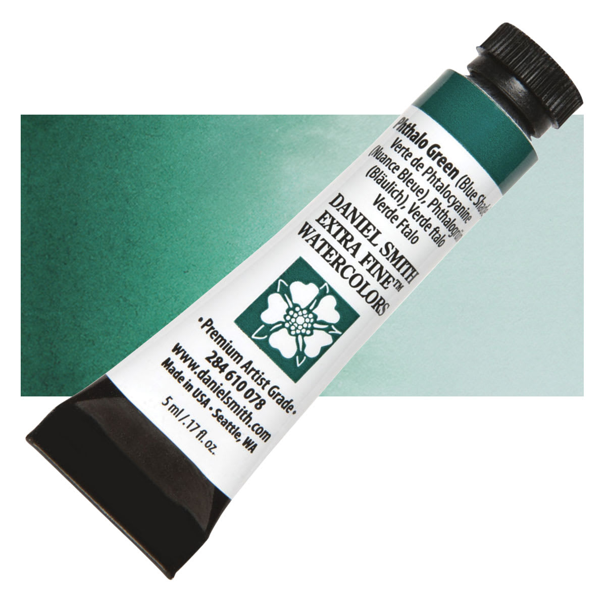 Daniel Smith Extra Fine Watercolor - Phthalo Green Blue Shade, 5 ml Tube and swatch
