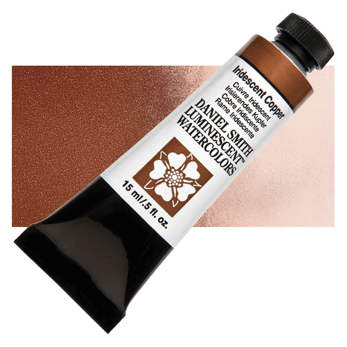 View Product DetailsDaniel Smith Luminescent Watercolor - Iridescent Copper, 15 ml, Tube and swatch