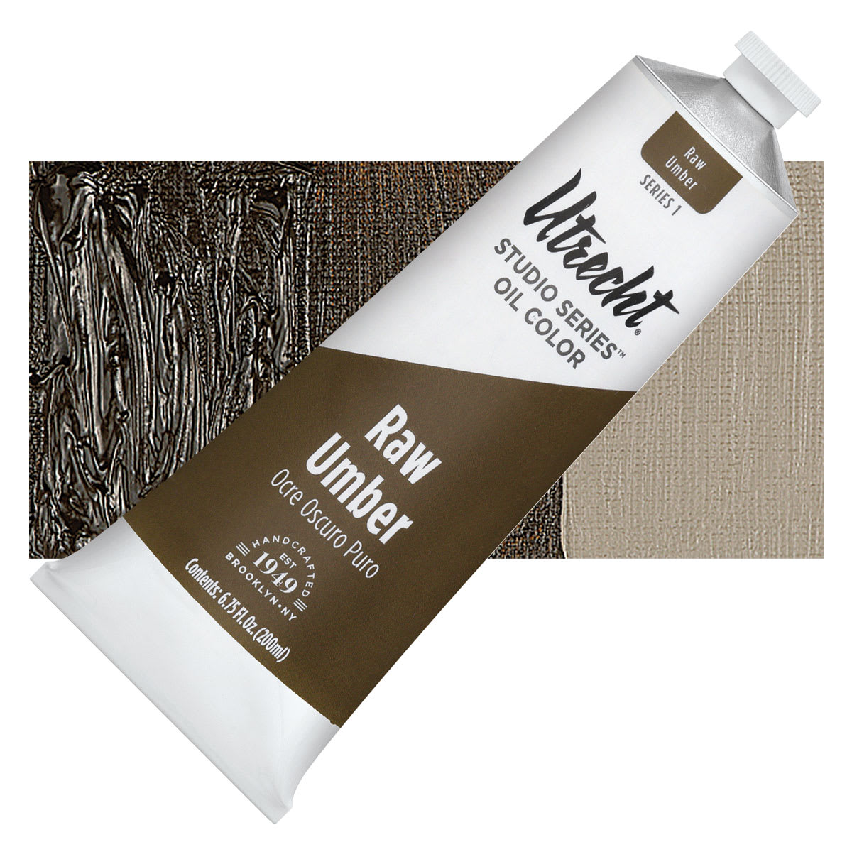 Utrecht Studio Series Oil Paint - Raw Umber, 200 ml tube and swatch