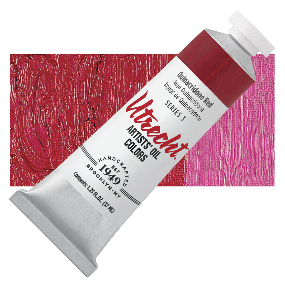 View Product DetailsUtrecht Artists' Oil Paint - Quinacridone Red, 37 ml tube and swatch