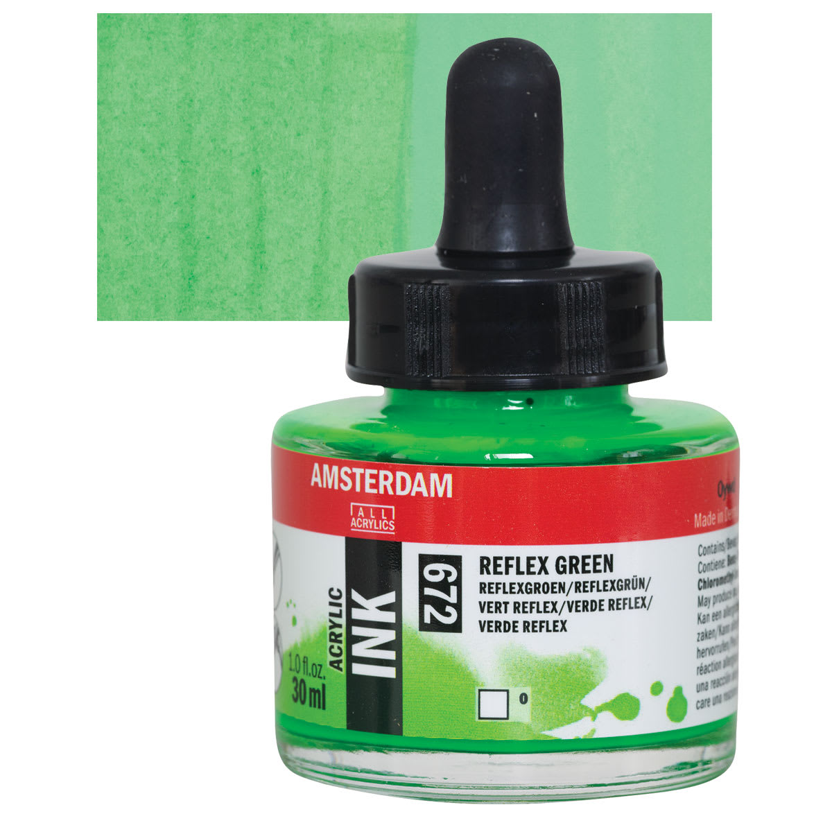 View Product DetailsAmsterdam Acrylic Ink - Reflex Green, 30 ml bottle and swatch