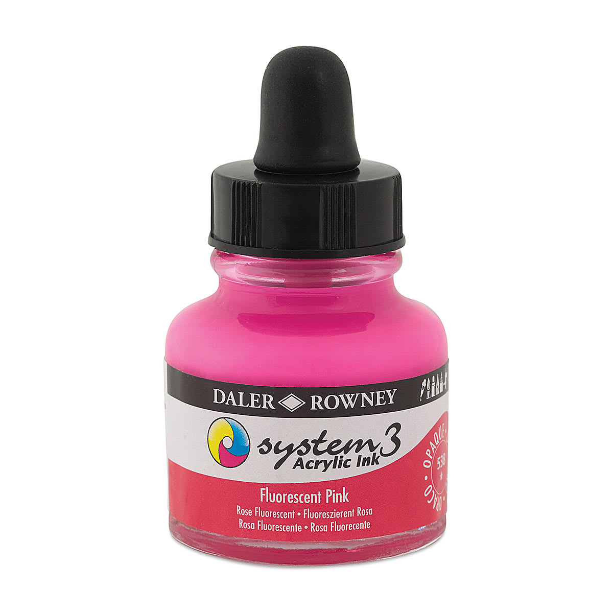 Daler-Rowney System3 Acrylic Ink - Fluorescent Pink, 1 oz